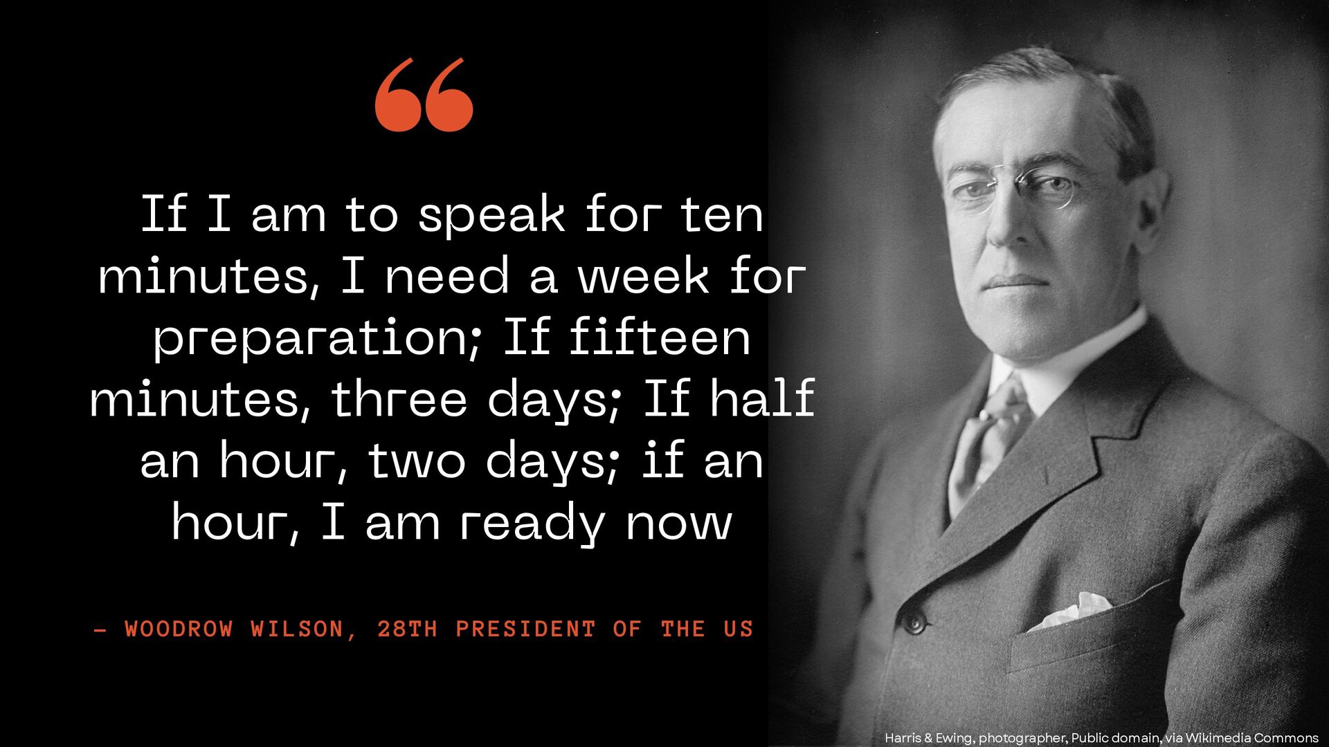 am to speak for ten minutes, I need a week for preparation; If fifteen minutes, three days; If half an hour, two days; if an hour, I am ready now Harris & Ewing, photographer, Public domain, via Wikimedia Commons