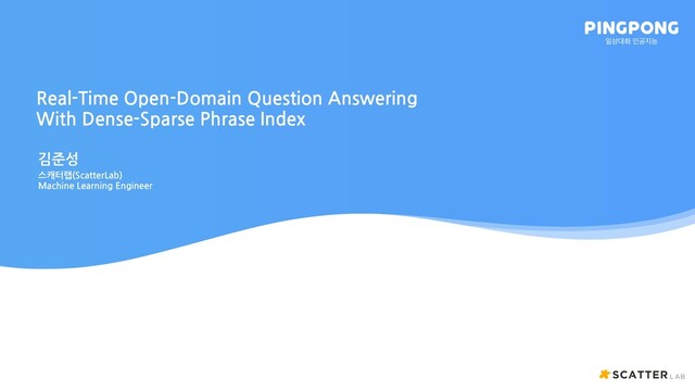 Christmas Eve … Document Retrieval Reading Comprehension ࣻ ࢤਸ ୷ೞೞח ೯ࢎо दػ Ѫ 4ࣁӝ ޖ۵ࠗఠ. दীח ܻझ݃झ զ о ഛೞѱ ೧ ঋওӝ ٸޙী 1ਘ 6ੌ, 3ਘ 21ੌ, 12ਘ 25ੌ оؘ ೞܖо ࢶغ . 12ਘ 25ੌ ܻझ݃झ۽ ܻ Ѫ AD 354֙, റ. 12ਘ 25ੌ TF-IDF Searching SQuAD Super Slow Document Size ࣻরѤ WIKi Model Size BERT-Large 10-100 sec/query ࢲ࠺झೡ ࣻ হ
