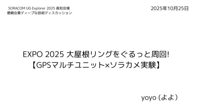 2025年10月25日 EXPO 2025 大屋根リングをぐるっと周回! 【GPSマルチユニット×ソラカメ実験】 yoyo (よよ) SORACOM UG Explorer