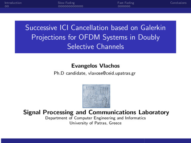 Gradient (CG) Overview of Reduced-Rank Conjugate Gradient Algorithm Let Rx = b with R ∈ CN×N and b, x ∈ CN×1. Basic steps of CG Algorithm for i ∈ [1, D] Direction update: di = di−1 + βi di−1 Solution update: xi = xi−1 + αi di Residual update: ri = ri−1 − αi Rdi end for If D = N, then x is the exact solution which belongs in the Krylov space KN = span{d1, d2, . . . , dN } (14) If D < N, then the solution lies in the Krylov sub-space