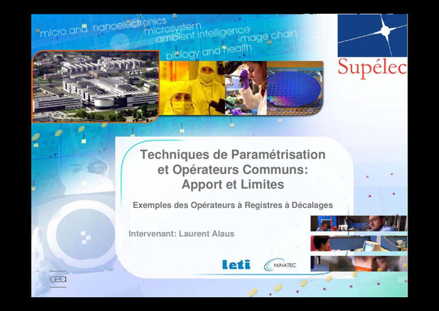 ou partielle sur quelque support que ce soit ou utilisation du contenu de ce document est interdite sans l’autorisation écrite préalable du CEA All rights reserved. Any reproduction in whole or in part on any medium or use of the information contained herein is prohibited without the prior written consent of CEA 2007 , III. Opérateurs Communs: Implémentation et Résultats 2. Résultats: 2. Construction d’une Chaine d’Emission/Réception : Chaine Complete Techniques de Paramétrisation et Opérateurs Communs: Apport et Limites Exemples des Opérateurs à Registres à Décalages Remarques: ¾ Dans 4 cas sur 4, nous obtenons un gain de complexité par rapport à la Méthode Velcro et à la Structure Minimale. ¾A l’exception du premier périmètre, la complexité augmente avec le degrés de factorisation. ¾L’utilisation des opérateur par le biais de la structure optimisée prouve la viabilité de la méthode Opérateur Commun quelque soit le périmètre. 79%