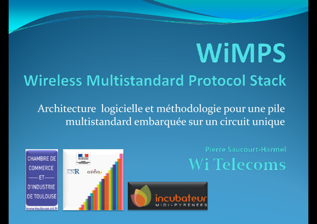 II. Convergence matérielle & logicielle des radiocom. III. Architectures logicielles pour piles protocolaires IV. Besoins pour les terminaux multistandard V. Architecture logicielle et méthodologie de WiMPS VI. Avancement du prototype WiMPS VII. Conclusion & questions Applications orientées utilisateurs : Navigateur internet, transfert de fichiers, messageries. Lecteurs multimédia en continu (streaming). Couches protocolaires « hautes » (> niveau 3) de transmission de données du monde IP : transmission de données du monde IP : Couche application : HTTP, FTP, SMTP, POP3, … Couche de transport : TCP, UDP, RTP, … Couche de réseau : Généralement la partie haute d’IP, offrant l’interface de ses services à la couche de transport. © 2009 Wi Telecoms Séminaire à Supélec Rennes - 2 avril 2009 10