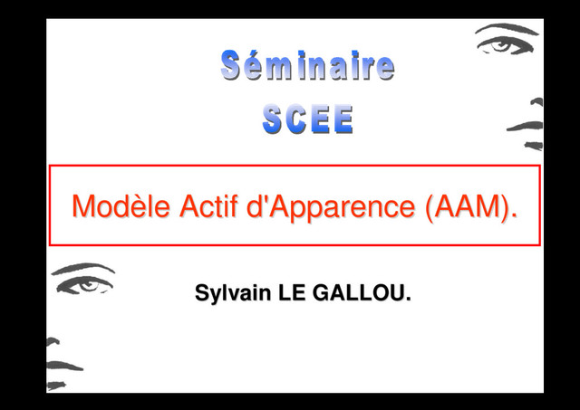 Moyens. Recherche de X = M(b) , X : nouveau vecteur de description (Marquage, Texture, les 2) b : vecteur de paramètres du modèle ACP (b x , b g , et c : même principe) 2 2 # ! # ! Domaine de variation pertinent : ) λ λ ≤ ≤ − " " ) " " ! Φ + ≈ ) ! Φ + ≈ [ ] ) ) * ! " " ! ! Φ ≈ Variation de b = variation de X