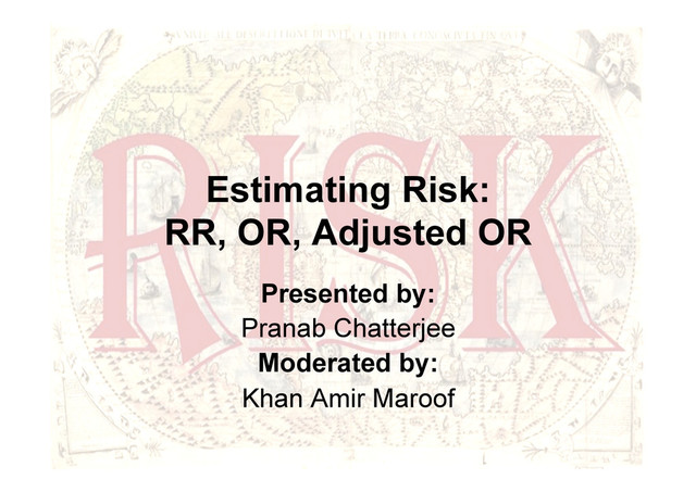 at the Department of Community Medicine, University College of Medical Sciences. It is being distributed under a CC – BY – NC (Attribution-Non-Commercial 3.0 Unported) License 2 Estimating Risk: RR, OR, Adjusted OR by Pranab Chatterjee is licensed under a Creative Commons Attribution-NonCommercial 3.0 Unported License.