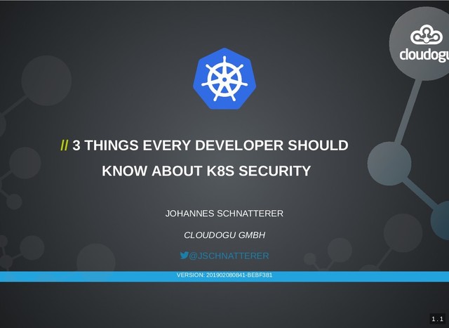 In this talk, I will describe my personal K8s security best practice established throughout the last years while developing applications on Kubernetes clusters. It contains security options that can be applied with reasonable effort in our everyday lives as software developers and shows the effects of these options on our application’s security.
