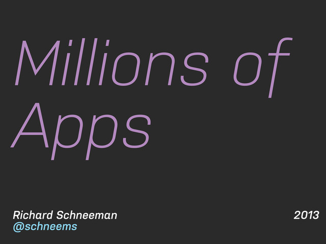 many deploys • Dependencies • Explicitly declare and isolate dependencies • Config • Store config in the environment • Backing Services • Treat backing services as attached resources