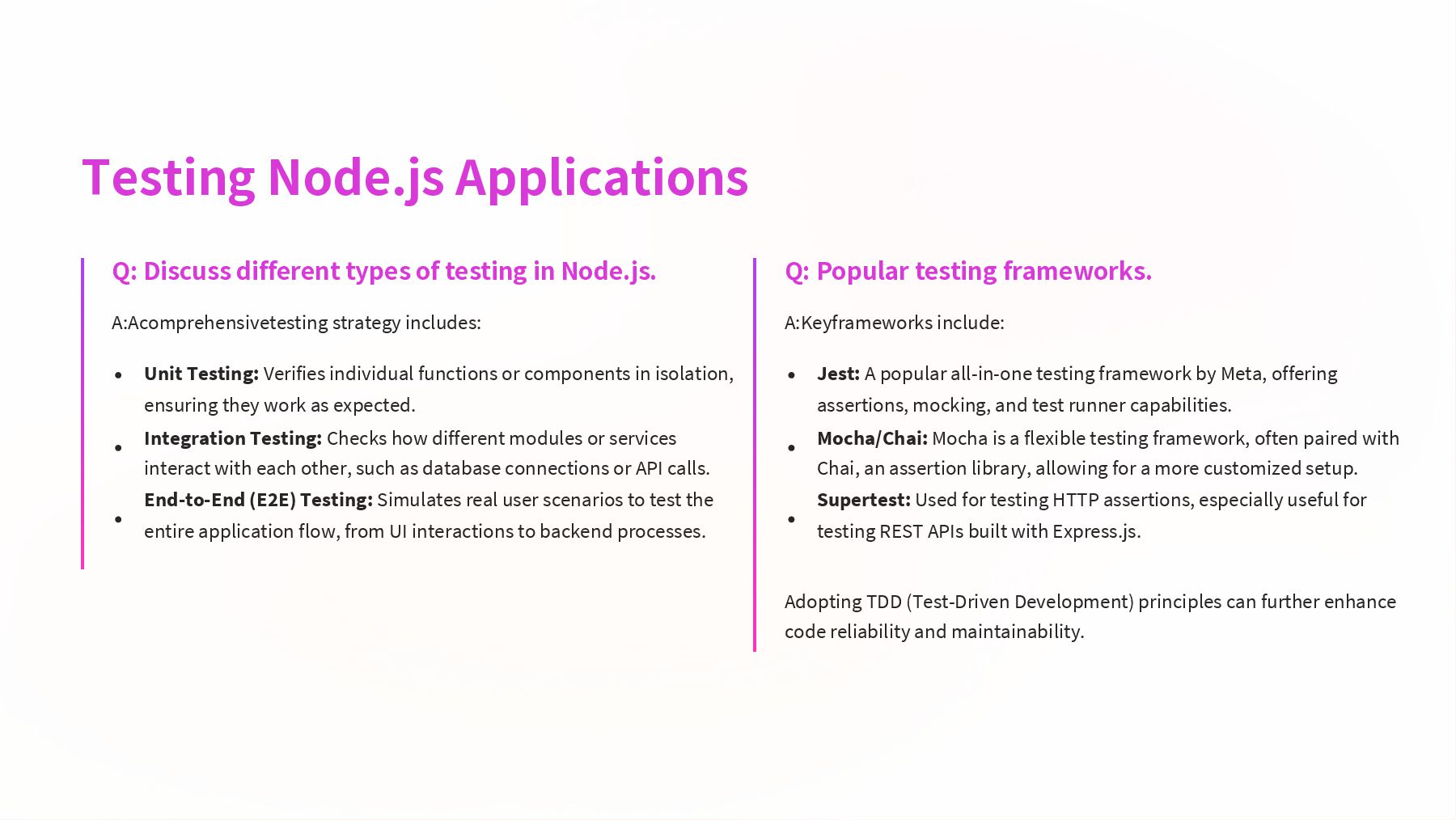 Freshers entering the job market can greatly benefit from mastering Node Js Interview Questions and Answers. It enables them to confidently approach even the trickiest technical questions with clear explanations. Interviewers appreciate candidates who demonstrate not just surface-level familiarity but deep understanding. Mastering Node Js Interview Questions and Answers provides that confidence and helps freshers transition smoothly from theory to practice. Topics such as npm modules, routing in Express, and the event-driven architecture of Node.js are all covered in this learning journey.