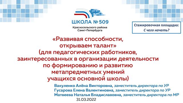 Стажировочная площадка: С чего начать? Стажировочная площадка: С чего начать?