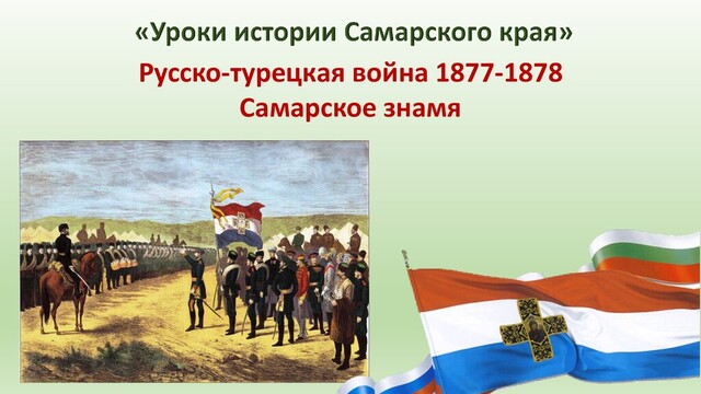 году. Активное участие в создании этого знамени принял член городской управы Пётр Владимирович Алабин и его жена Варвара Васильевна, которая руководила Самарским женским комитетом Красного Креста, эскиз этого не совсем обычного подарка выполнил художник Евстафьевич Симаков. П. В. Алабин предпринял ряд акций по организации материальной помощи и морально-политической поддержки болгарскому народу, боровшемуся за свержение турецкого ига. Так, полученные 725 рублей от проведения литературно-музыкального вечера были отосланы сербскому митрополиту Михаилу. Своих сыновей, Василия и Ивана, служивших в гвардии, Пётр Владимирович благословил на участие в борьбе за независимость братской Сербии. Знамя состояло из трехцветного полотнища - белого, алого и синего цветов-с черным крестом посредине. В середине креста - образ Иверской Божией Матери, а с другой стороны знамени - изображение святых Кирилла и Мефодия, болгарские и славянские просветители. На алой ленте - щит с надписью золотыми буквами: "Болгарскому народу». Древко - черное, с позолоченной скобою, на которой изображено: "Болгарскому народу, город Самара, 1876 г.". Вышивали его монахини Иверского женского монастыря.