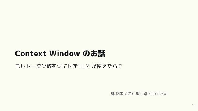 Context Window のお話 もしトークン数を気にせず LLM が使えたら? 林 祐太 / ぬこぬこ