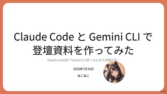 みんなで比較LT会! 2025年7月16日 ぬこぬこ 1 / 19