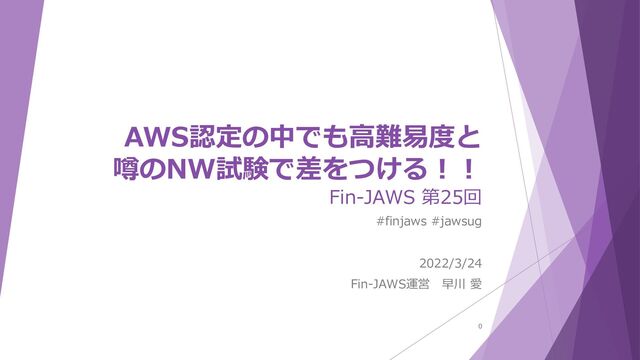 2022/3/24 に開催された Fin-JAWS 第25回 の登壇資料です。 Fin-JAWS 第25回 ~Go to Fin-JAWS School! 2022~ https://fin-jaws.connpass.com/event/240282/