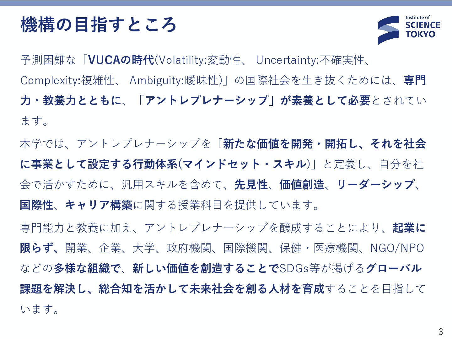 ●アントレプレナーシップ教育機構|Science Tokyo https://www.isct.ac.jp/ja/001/about/organizations/center-for-entrepreneurshipe-education ●アントレプレナーシップ教育機構 https://www.cee.titech.ac.jp/