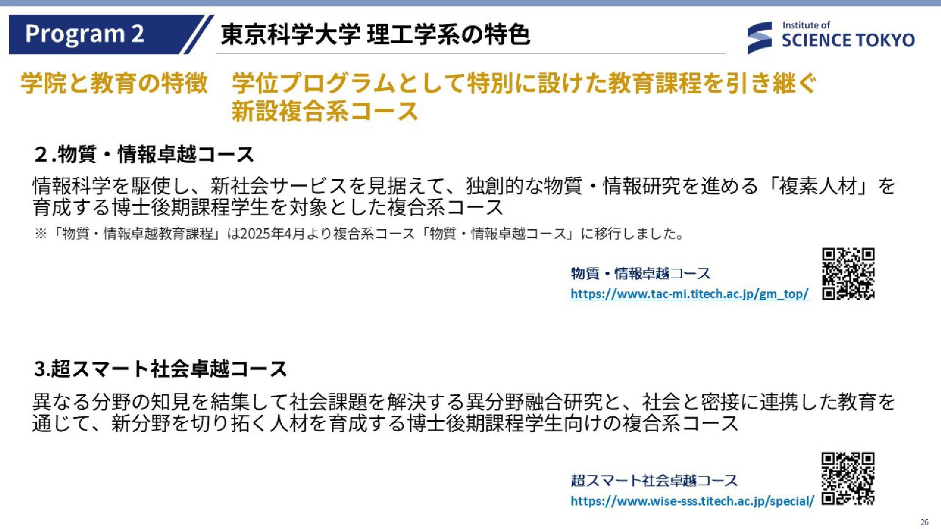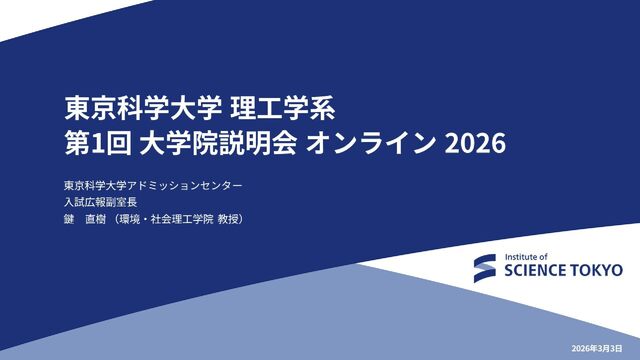 2026年3月に行われた「東京科学大学理工学系 第1回大学院説明会オンライン2026」の資料です。