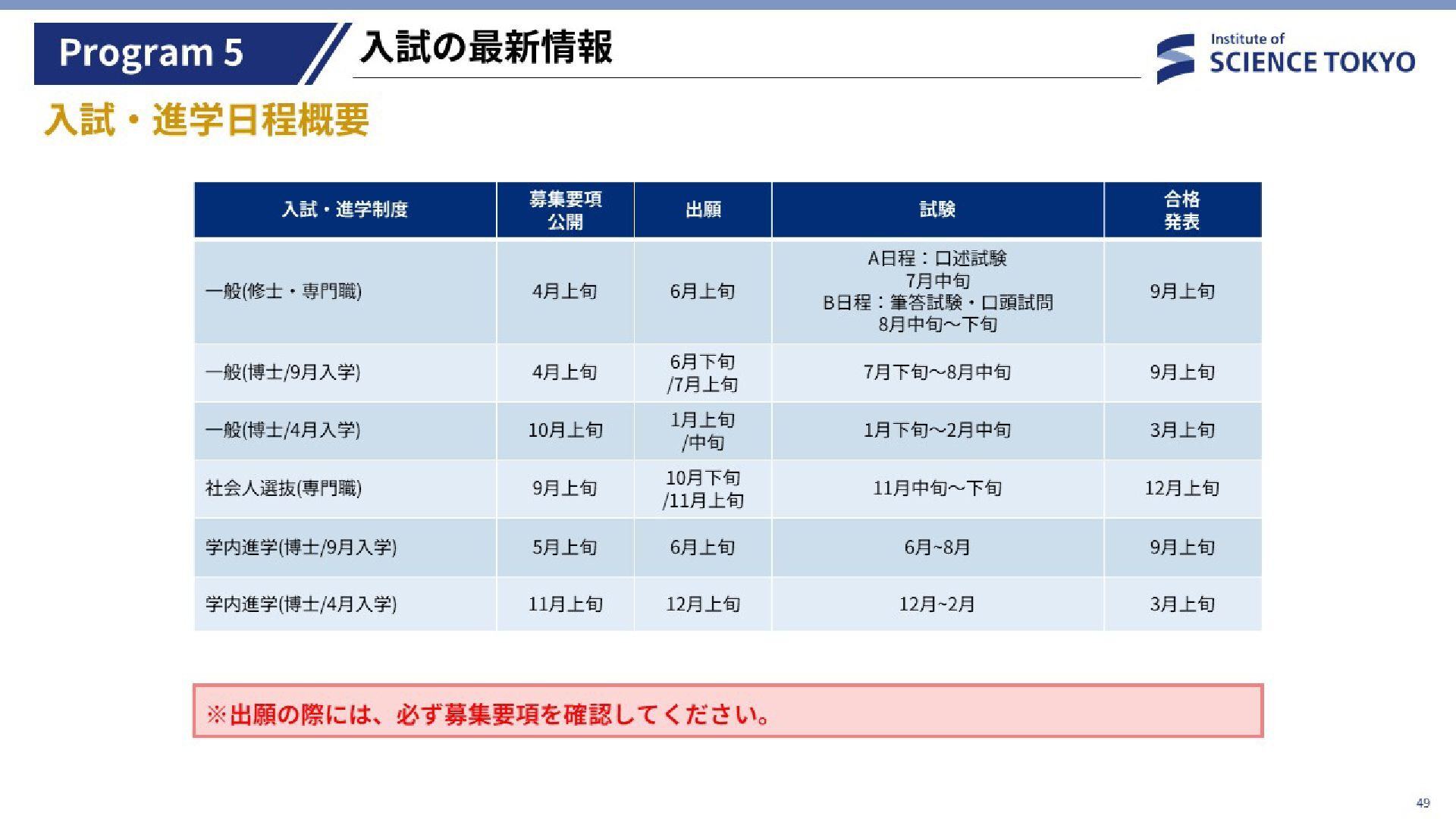 ●募集要項|Science Tokyo 受験生 https://admissions.isct.ac.jp/ja/013/graduate/guideline