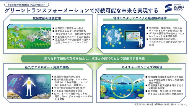 この図は、Science Tokyoが掲げるビジョン「善き生活・善き社会・善き地球」の実現に向けて、現在の社会課題やまだ見えぬ未来から研究の方向を見出し、研究者同士や多様な社会の人々が協働していく可能性を可視化したものです。 https://www.isct.ac.jp/ja/017/research/visionary-initiatives