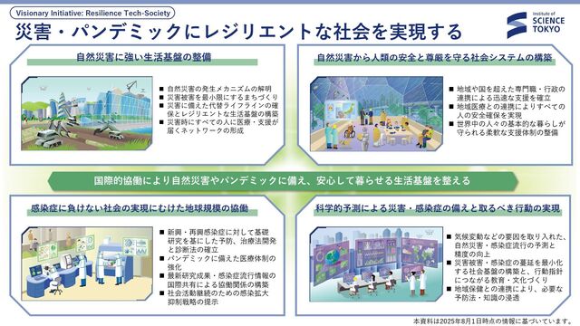 この図は、Science Tokyoが掲げるビジョン「善き生活・善き社会・善き地球」の実現に向けて、現在の社会課題やまだ見えぬ未来から研究の方向を見出し、研究者同士や多様な社会の人々が協働していく可能性を可視化したものです。 https://www.isct.ac.jp/ja/017/research/visionary-initiatives