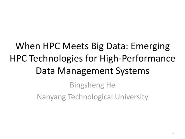 Big data has become a buzz word. Among various big-data challenges, real-time data analytics has been identified as one of the most exciting and promising areas for both academia and industry. We are facing the challenges at all levels ranging from sophisticated algorithms and procedures to mine the gold from massive data to high-performance computing (HPC) techniques and systems to get the useful data in time. Our research has been on the system design and implementation of HPC technologies as weapons to address the performance requirement of real-time data analytics. Interestingly, we have also observed the interplay between HPC and real-time data analytics, where real-time data analytics also poses significant challenges to the design and implementation of HPC technologies. In this talk, I will present our recent research efforts in developing real-time data analytics system with GPUs and on Cloud. Finally, I will outline our research agenda. More details about our research can be found at http://pdcc.ntu.edu.sg/xtra/.