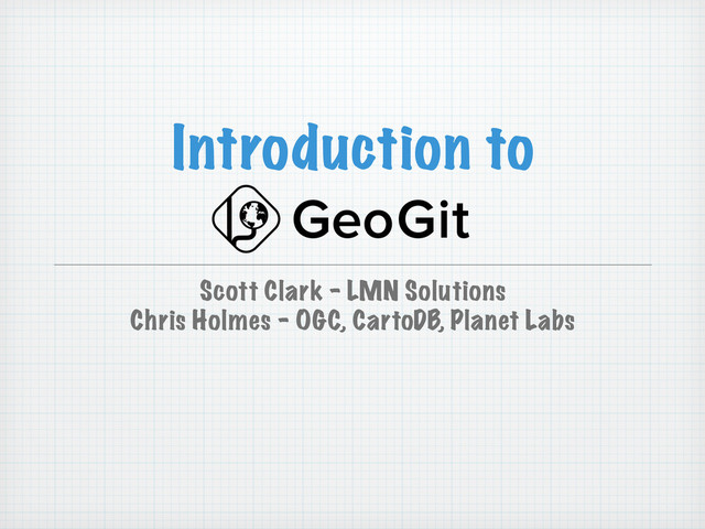 Introduction To GeoGit: Distributed Versioned Editing For Geospatial Features. Presented by Scott Clark and Chris Holmes at FOSS4G 2013 in Nottingham, England