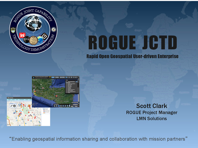 tracking & alerts Ø ROGUE capabilities will augment DisasterAware ‣ Enabling use of VGI with the authoritative information PDC already uses ‣ Enabling sharing between organizations ‣ Providing an open source option to lower cost of DisasterAware deployments to other countries PDC Transition