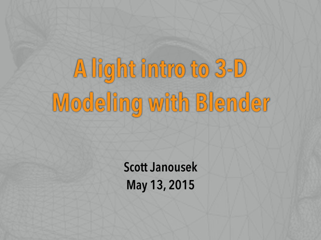 Janousek // [email protected] // www.scottjanousek.com // Creative Commons “Mesh Modeler” Open Source Free Lots of features & functionality Active user community Why use blender?