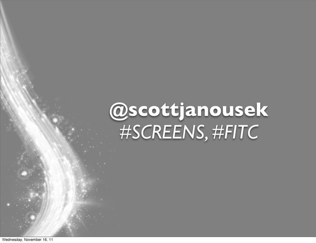 researchers, and hobbyists who use Processing for learning, prototyping, and production.” Why Processing? “Initially developed to serve as a software sketchbook and to teach fundamentals of computer programming within a visual context, Processing also has evolved into a tool for generating finished professional work.” Wednesday, November 16, 11
