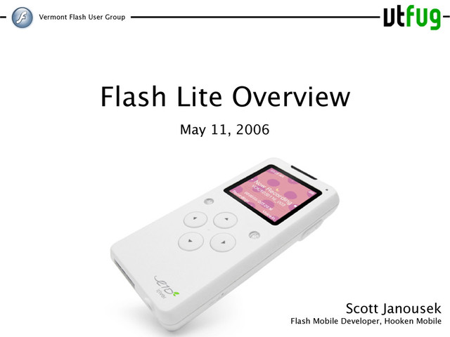 and Interactivity • Adobe Certified Flash Designer and Developer • Doing mobile since Flash Lite 1.1 • Involved with Flash Mobile efforts including training, certification, etc. • Frequent Speaker on Flash Mobile (FITC 2005, BFPUG) • Contributing to upcoming Flash Mobile Book • Hooken Mobile (look for launch soon) • Excited about the potential for Flash Mobile in a global setting