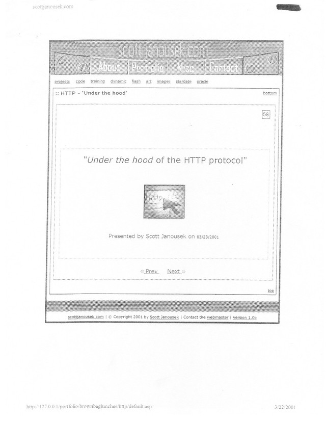 One of my earlier presentations back from 2001, on the HTTP protocol. I gave this presentation to HTML developers who were just getting started creating websites.