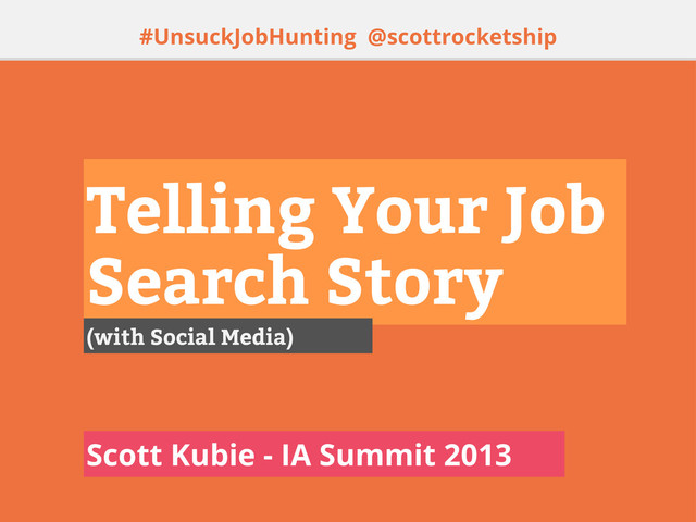 The presentation version of my 20-minute talk "Telling Your Job Search Story (with Social Media)" as presented at the 2013 Information Architecture Summit in Baltimore.