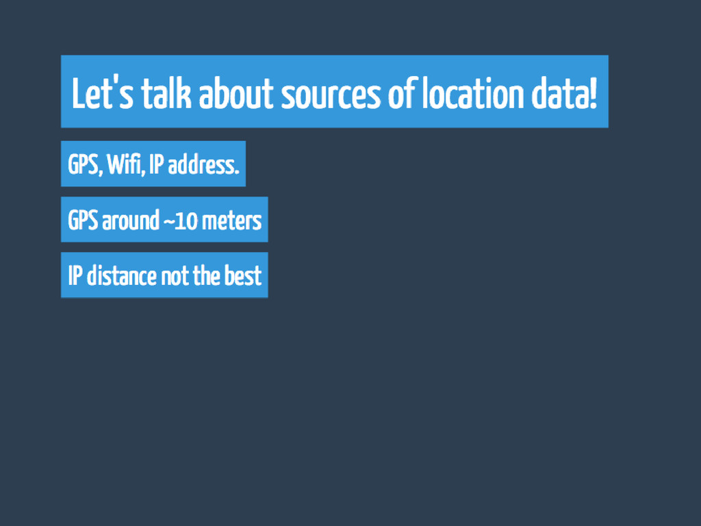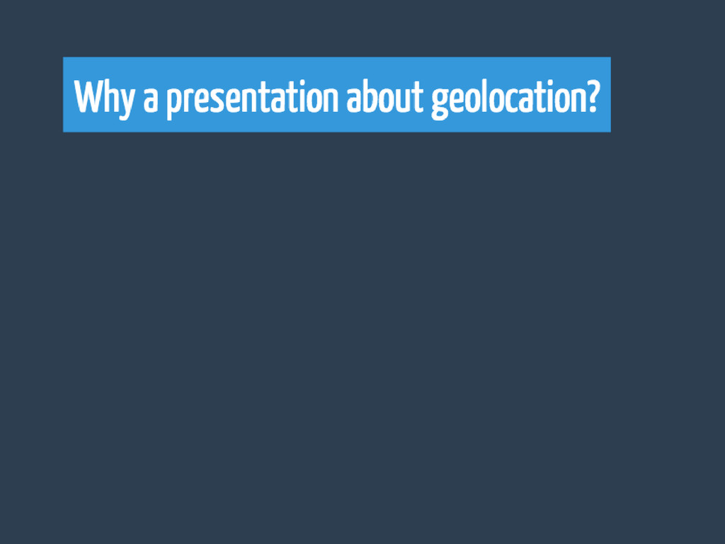Slides from a presentation I gave about the HTML5 Geolocation API at the November meetup of NYC HTML5