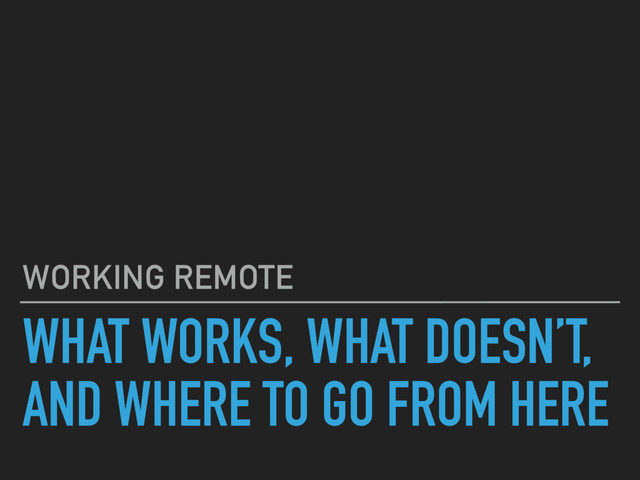 After several years of working remote on distributed teams, I have learned what works well, but more importantly, what doesn't.