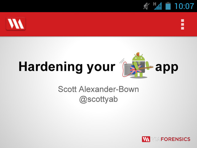 Scott Alexander-Bown • Senior Developer @viaForensics • Co-author Android Security