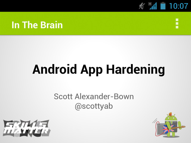 Presentation as part of the Skills Matter: In the brain of sessions - more info and video here https://skillsmatter.com/meetups/6193-android-app-hardening