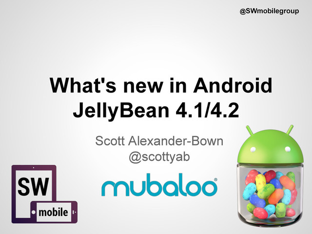 Quick fire presentation on new features on Android 4.2 for SWmobile - http://www.meetup.com/swmobile/events/88337152/