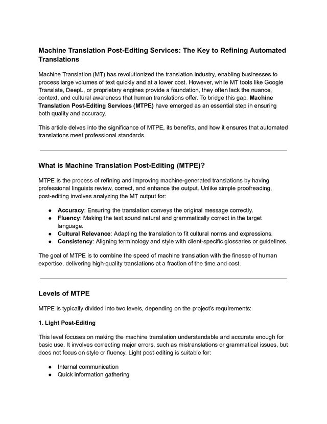 Invest in professional MTPE services to ensure your translated content is polished, accurate, and ready to engage a global audience.