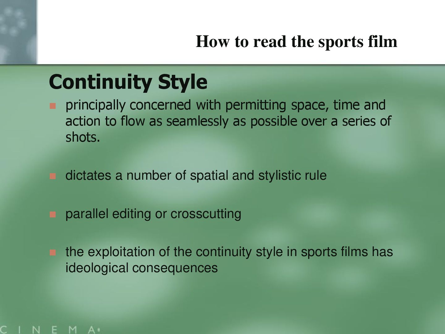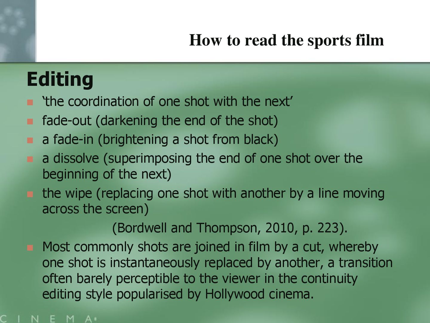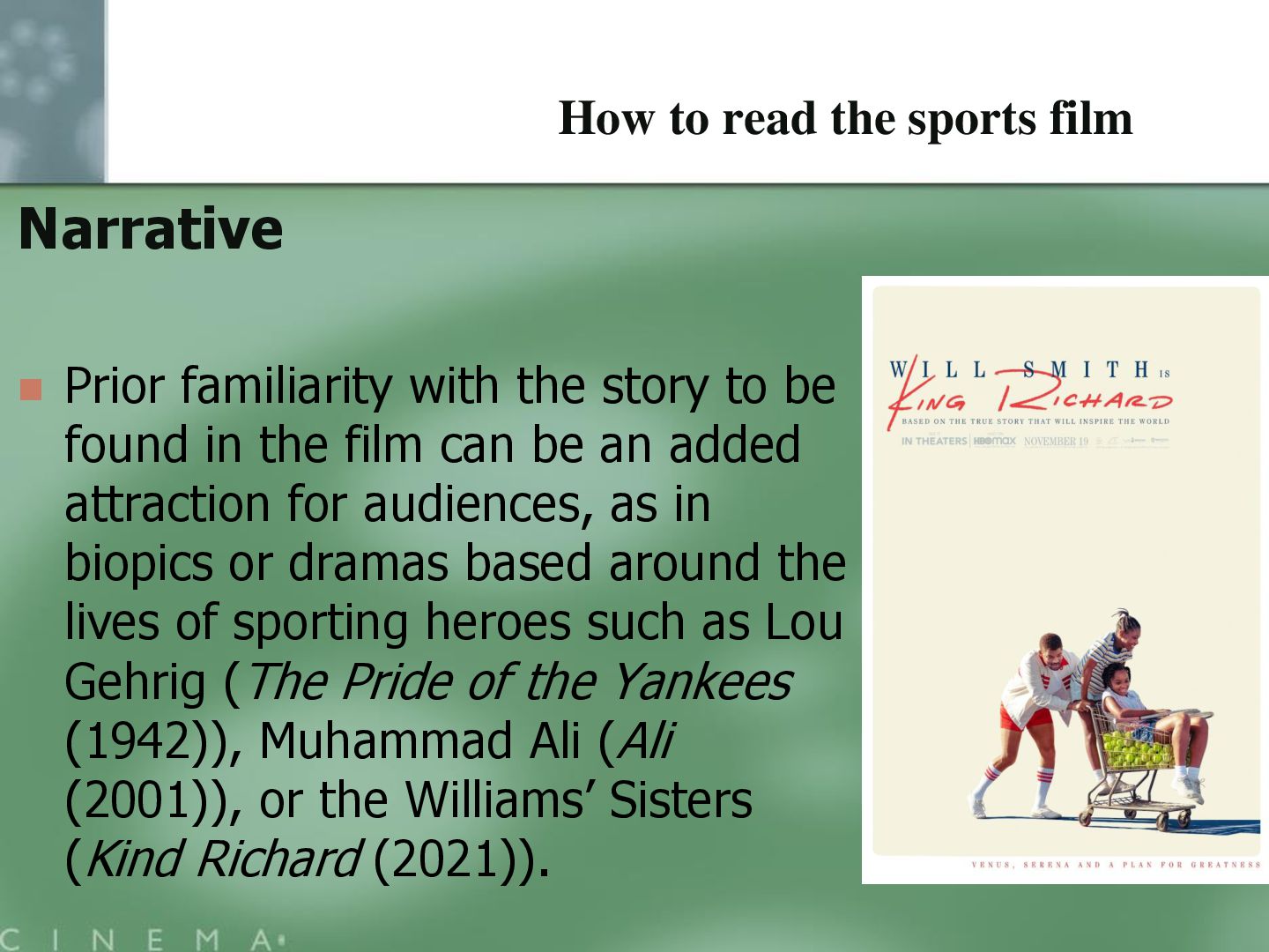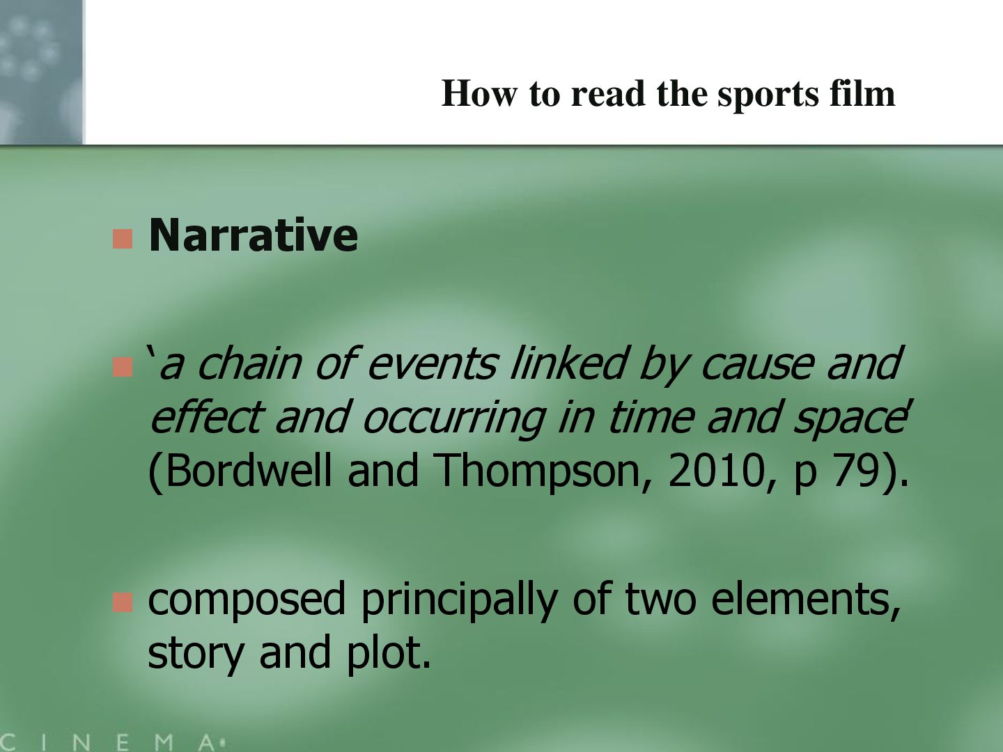 of this critical discourse over the past forty years has involved a broad range of disciplines and areas, with the influence of cultural studies particularly evident in relevant scholarship. As scholars of cultural studies have argued, film plays a critical role as a mediator of social relations through the naturalization of cultural and societal norms (Boyle, Millington, & Vertinsky, 2006, p, 110; Croteau & Hoynes, 2003; Schirato & Webb, 2004). This contention has informed the focus of research on the role and influence of sport cinema texts in articulating and informing broader discourses, including with regard to race, gender, social class, and national identity.