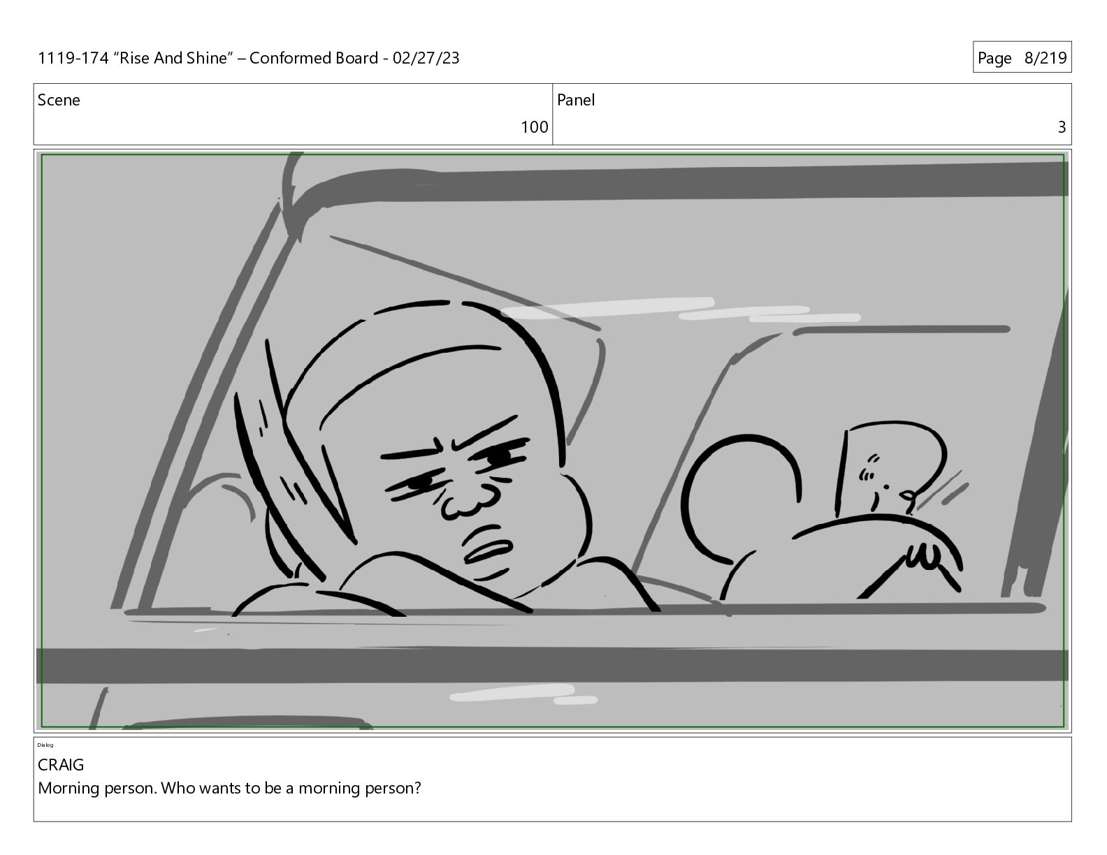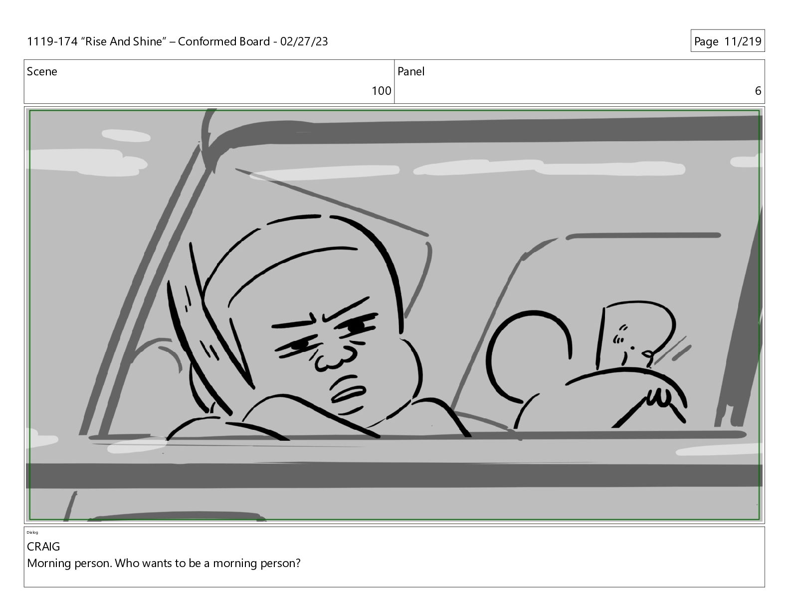 Scene 100 Panel 1 Dialog CRAIG Morning person. Who wants