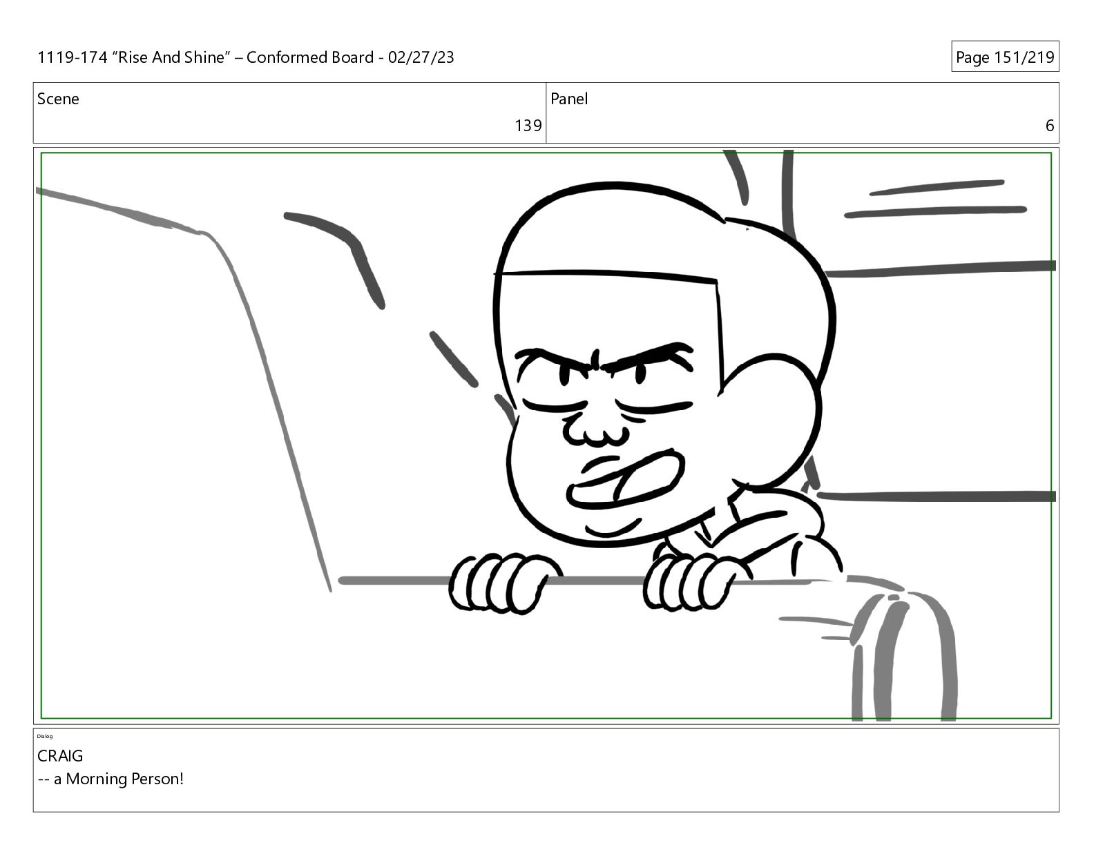 Scene 151 Panel 1 1119-174 “Rise And Shine” – Conformed