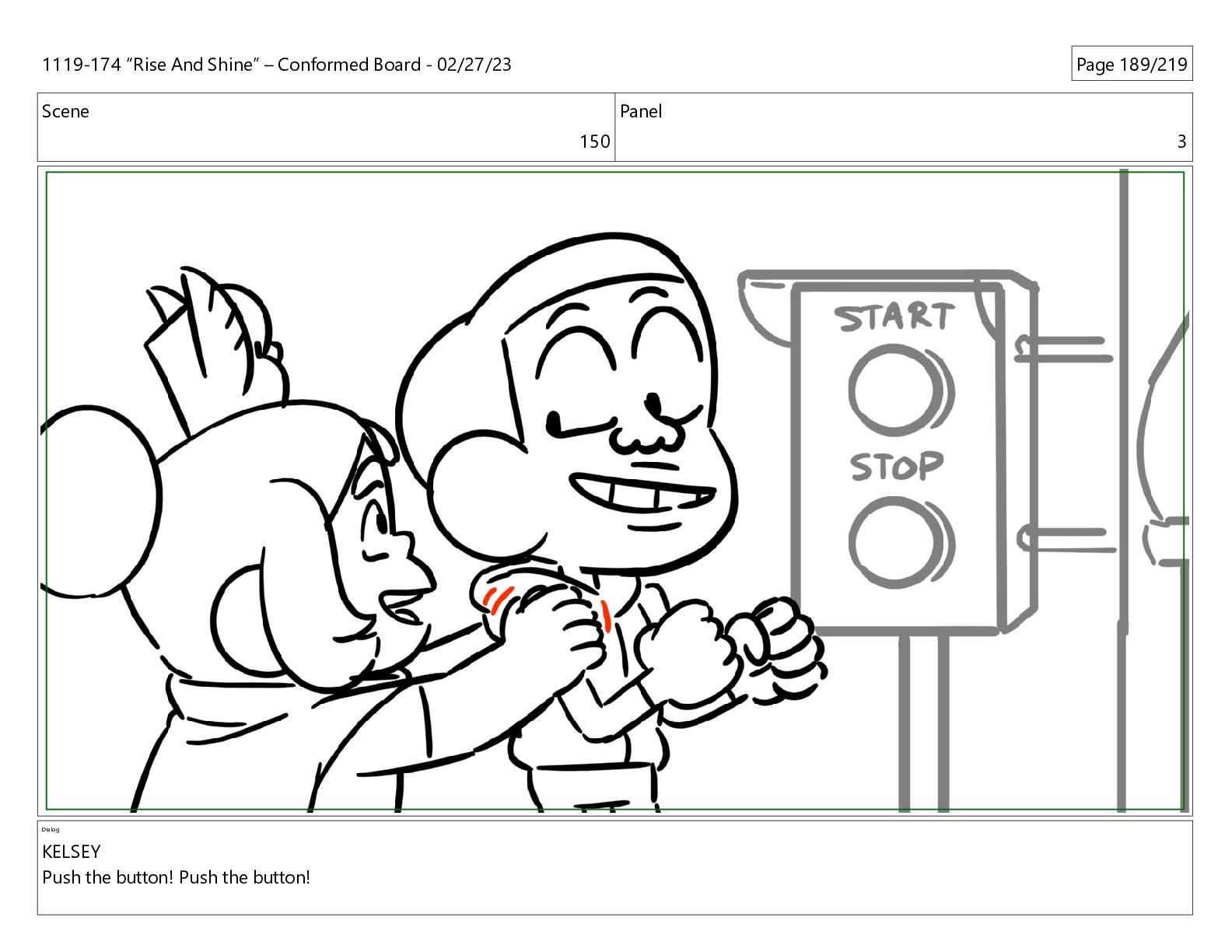 Scene 150 Panel 3 Dialog KELSEY Push the button! Push