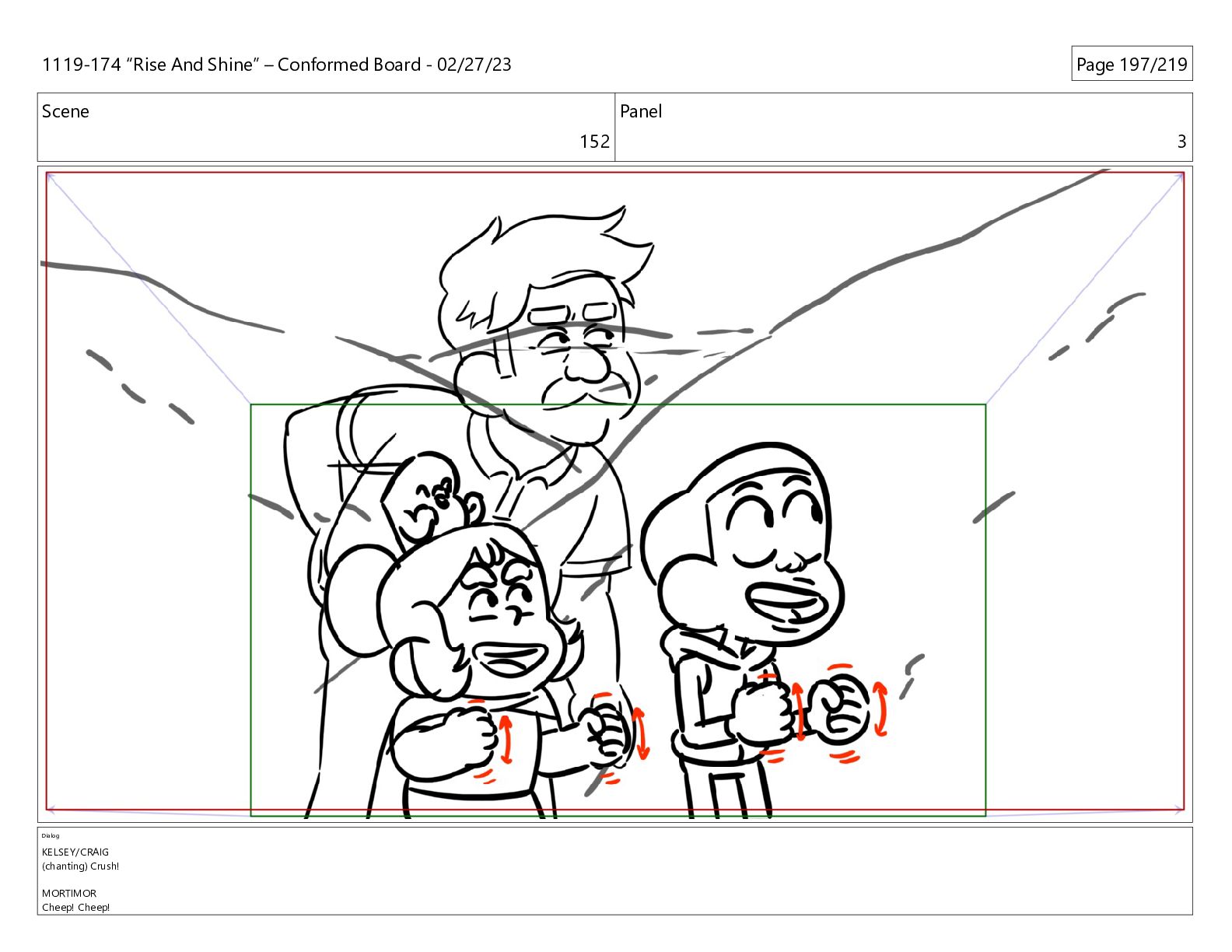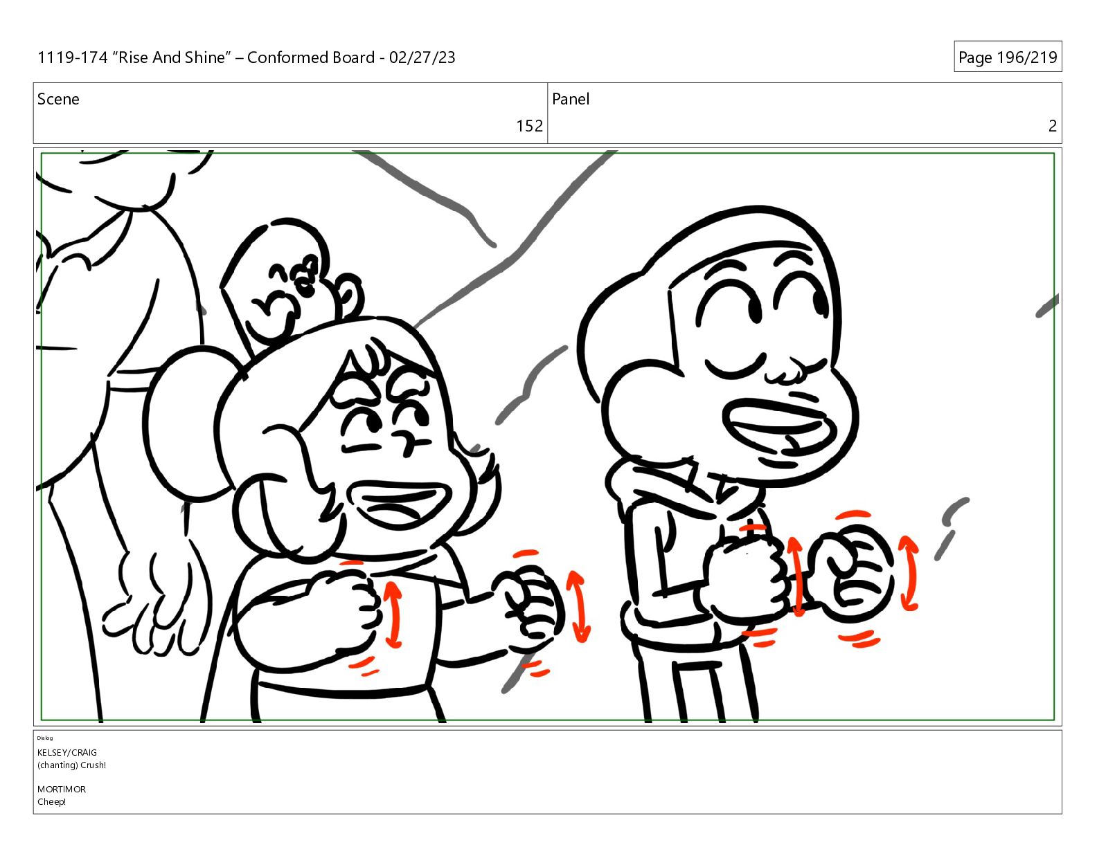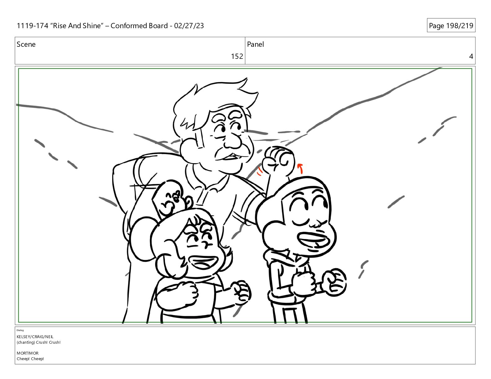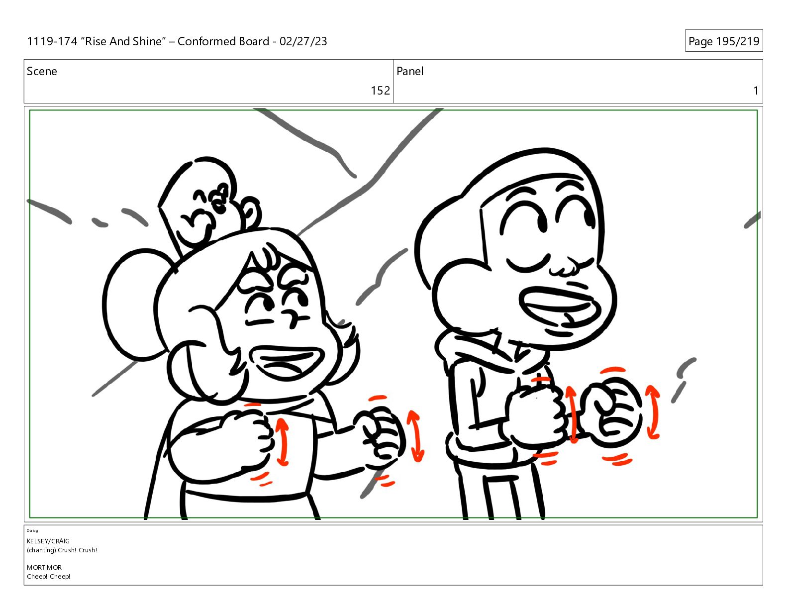 CRUSH! MORTIMOR (O.S.) Cheep! Cheep! CHEEP! 1119-174 “Rise And Shine” – Conformed Board - 02/27/23 Page 200/219