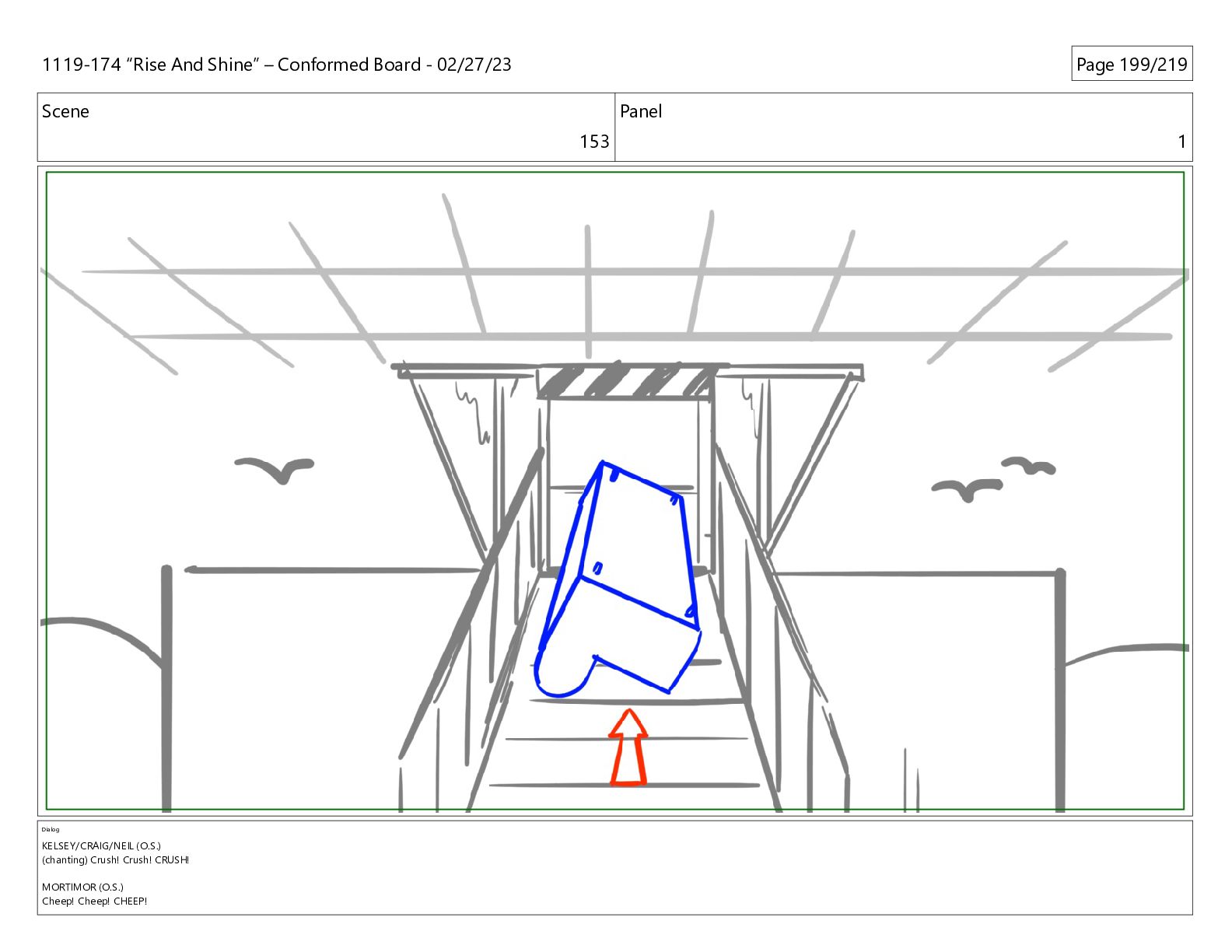 CRUSH! MORTIMOR (O.S.) Cheep! Cheep! CHEEP! 1119-174 “Rise And Shine” – Conformed Board - 02/27/23 Page 199/219