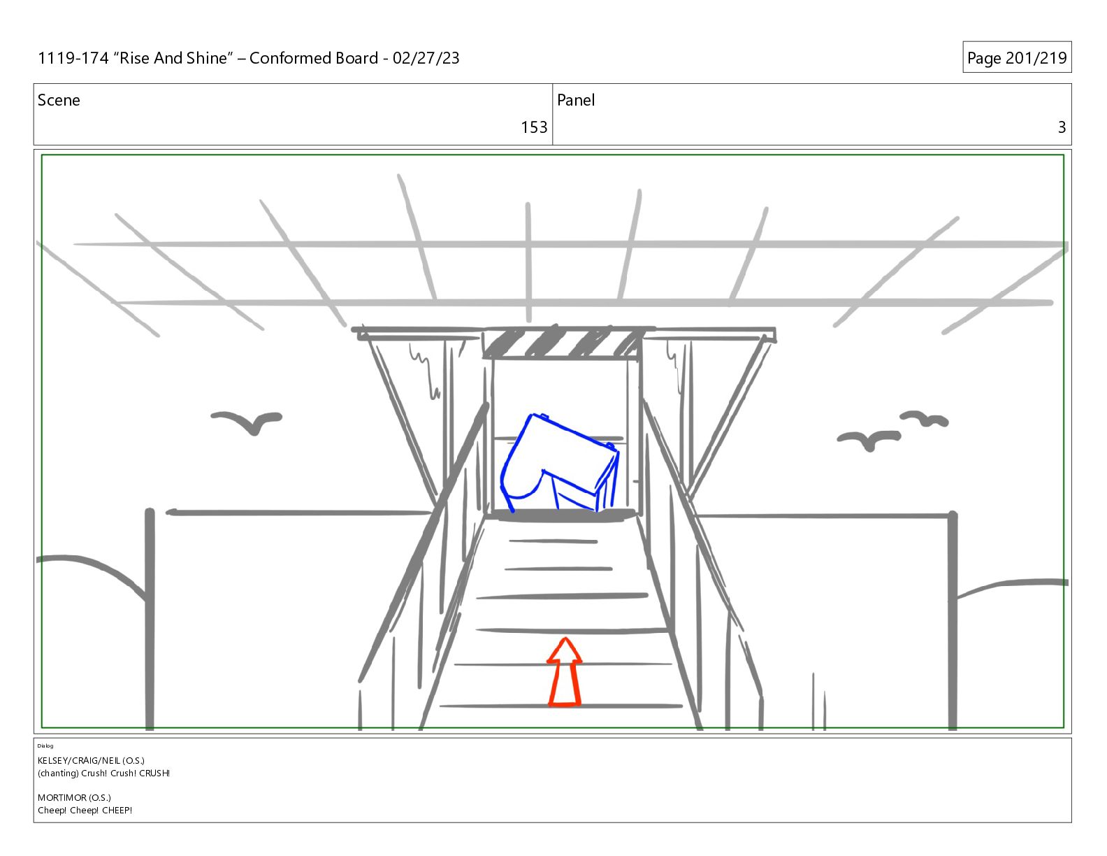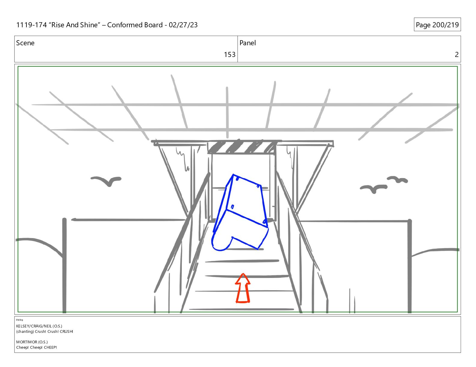 CRUSH! MORTIMOR (O.S.) Cheep! Cheep! CHEEP! 1119-174 “Rise And Shine” – Conformed Board - 02/27/23 Page 201/219