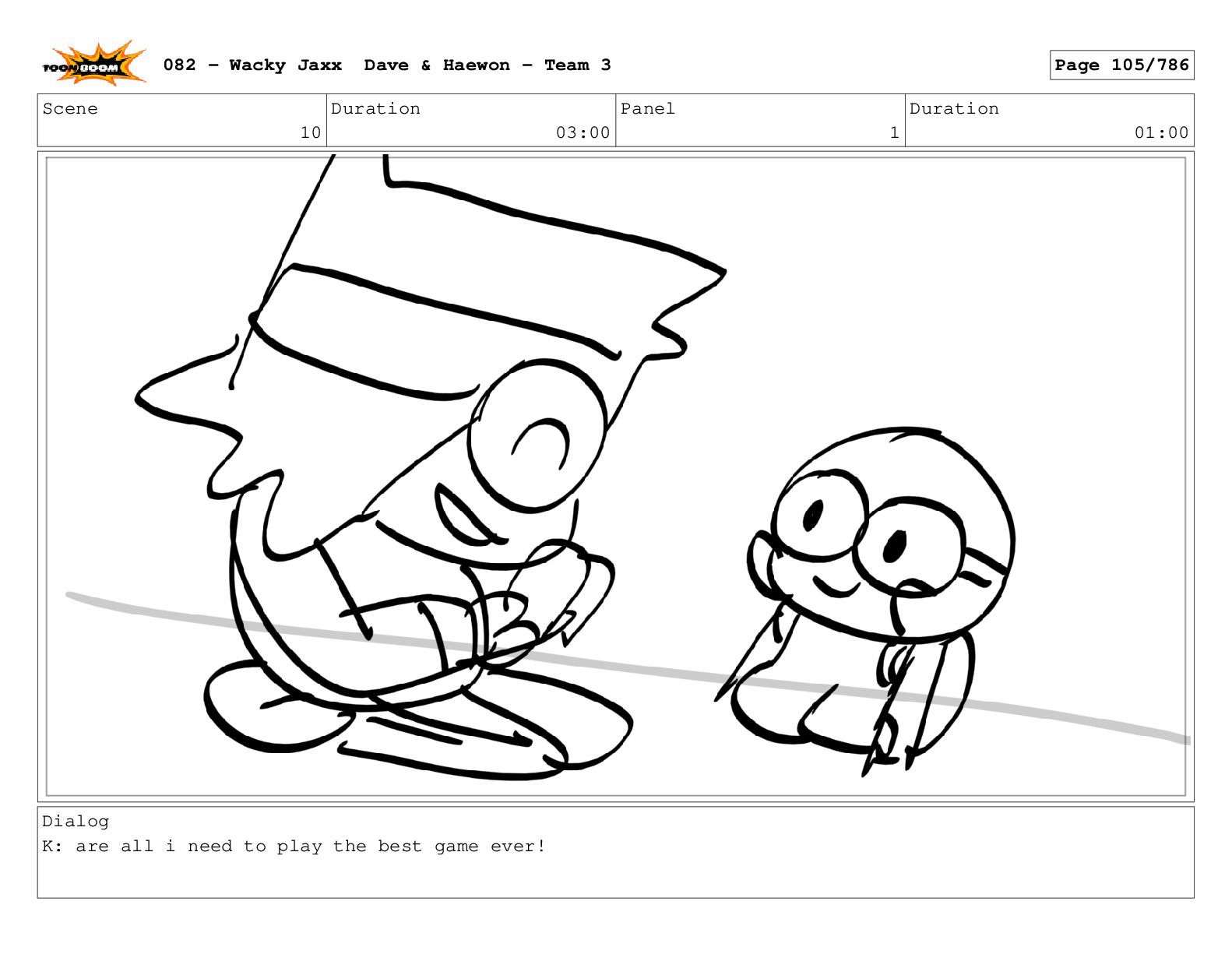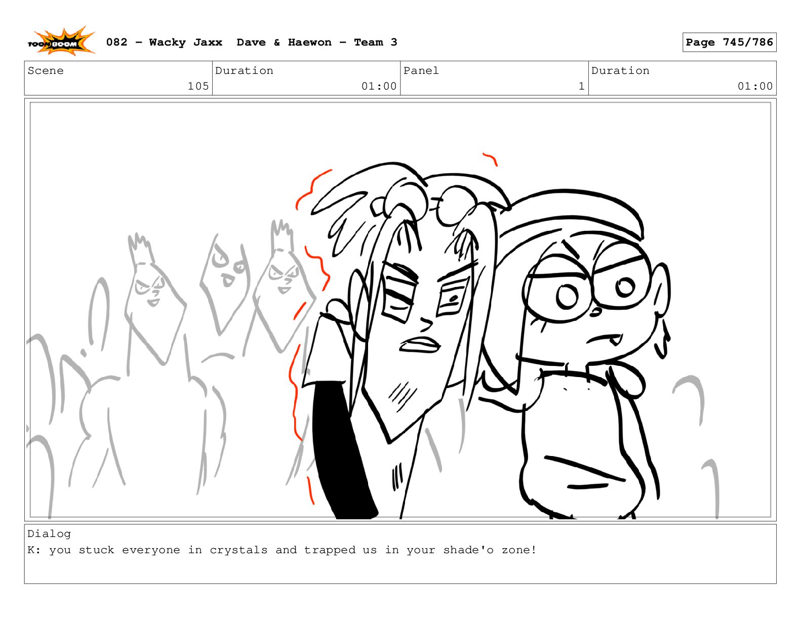 Scene 105 Duration 01:00 Panel 1 Duration 01:00 Dialog K: