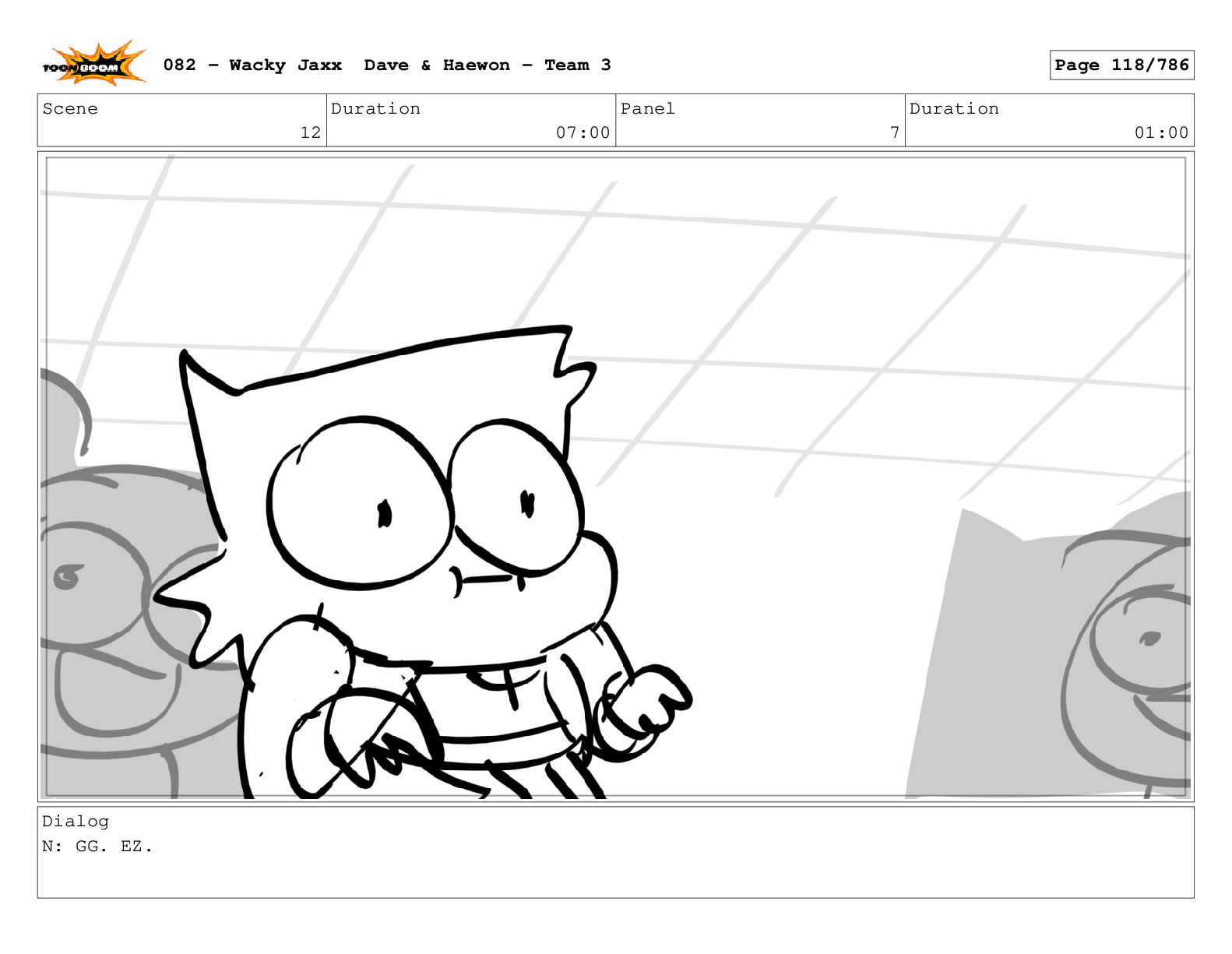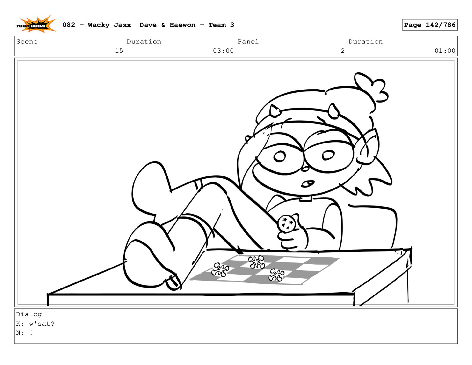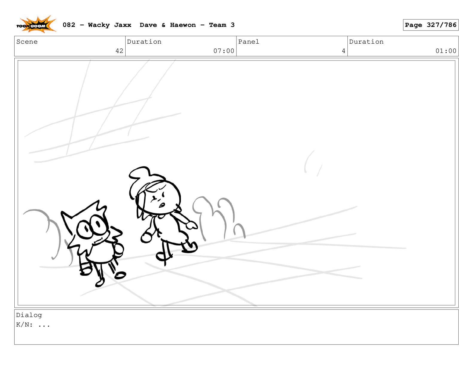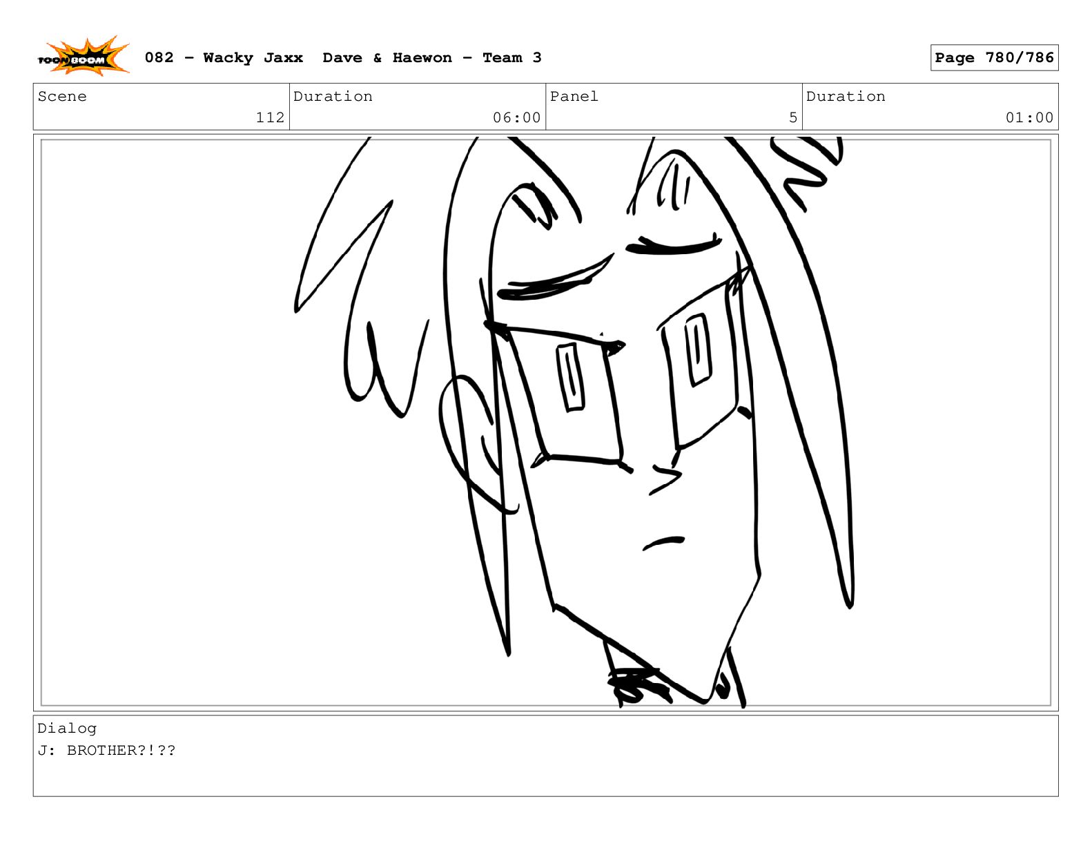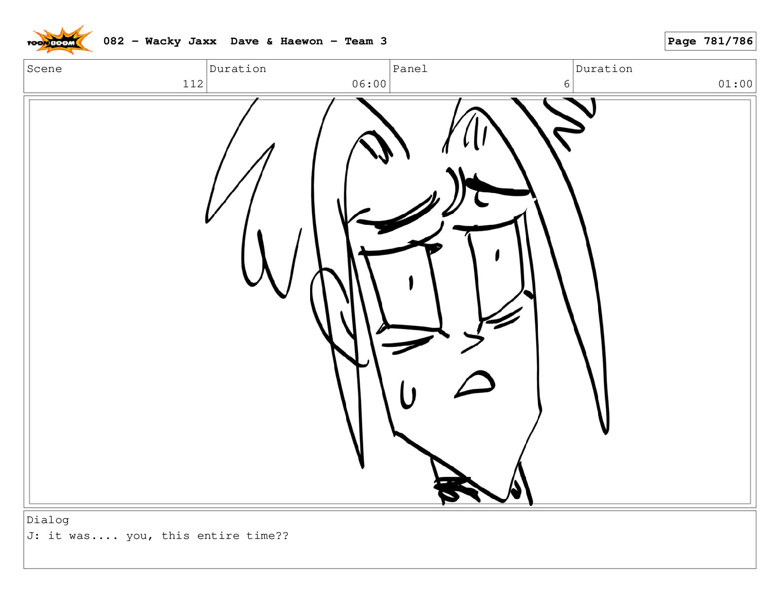 Scene 112 Duration 06:00 Panel 1 Duration 01:00 Dialog K/N:
