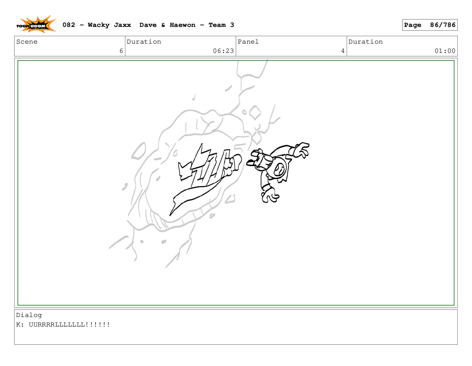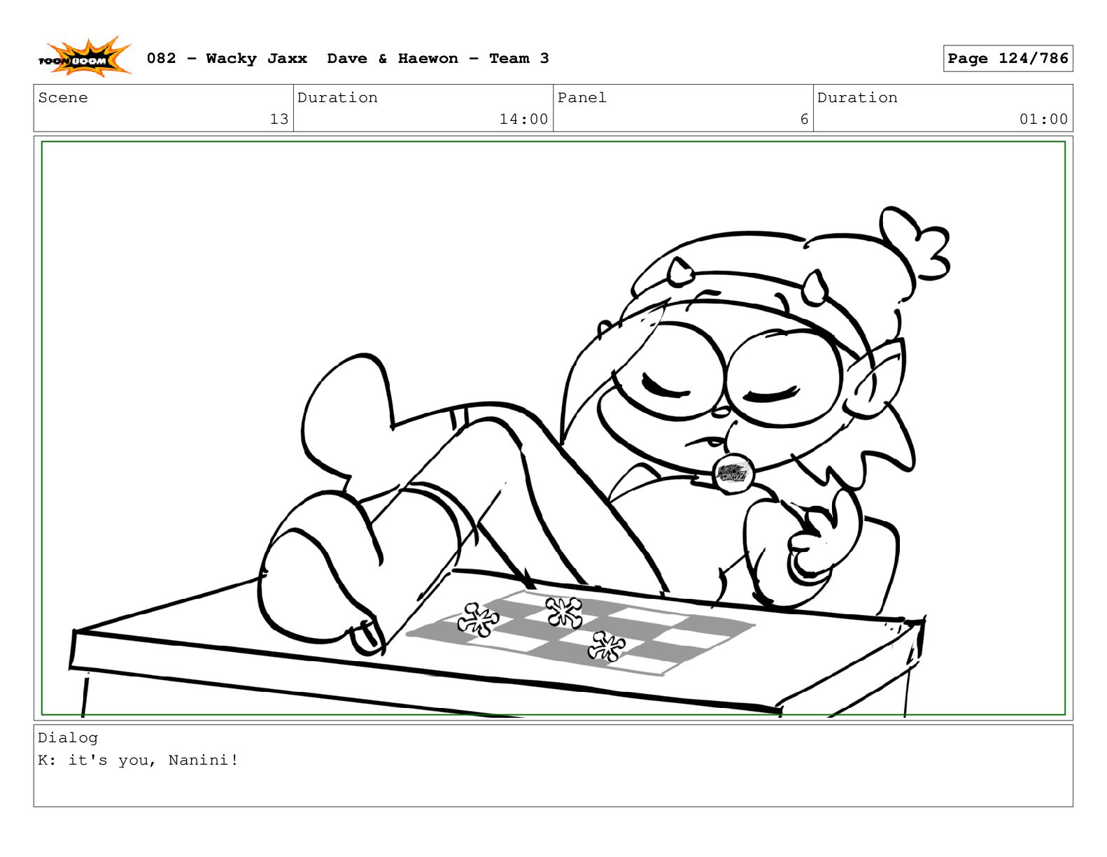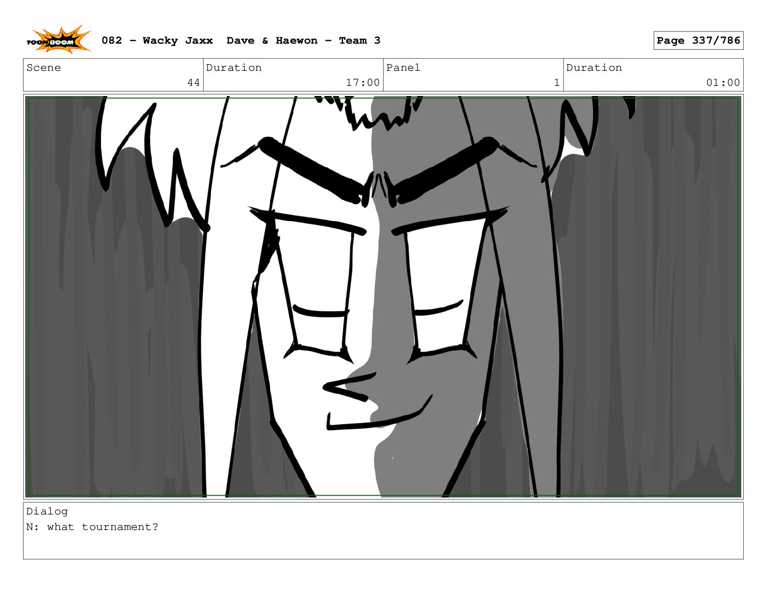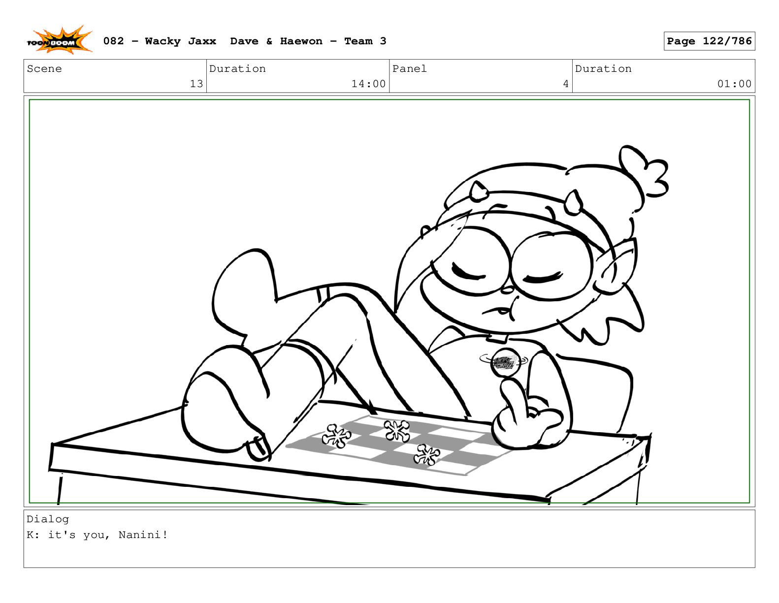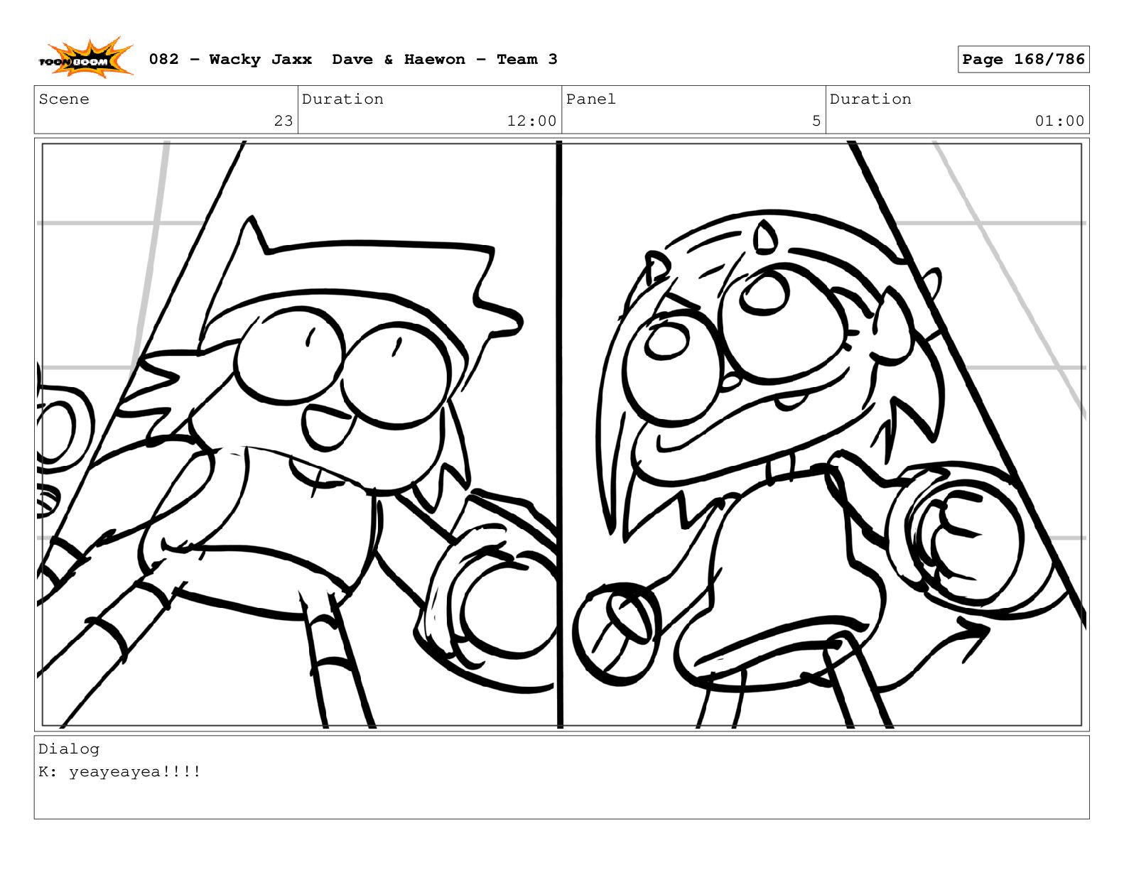 Scene 112 Duration 06:00 Panel 1 Duration 01:00 Dialog K/N: