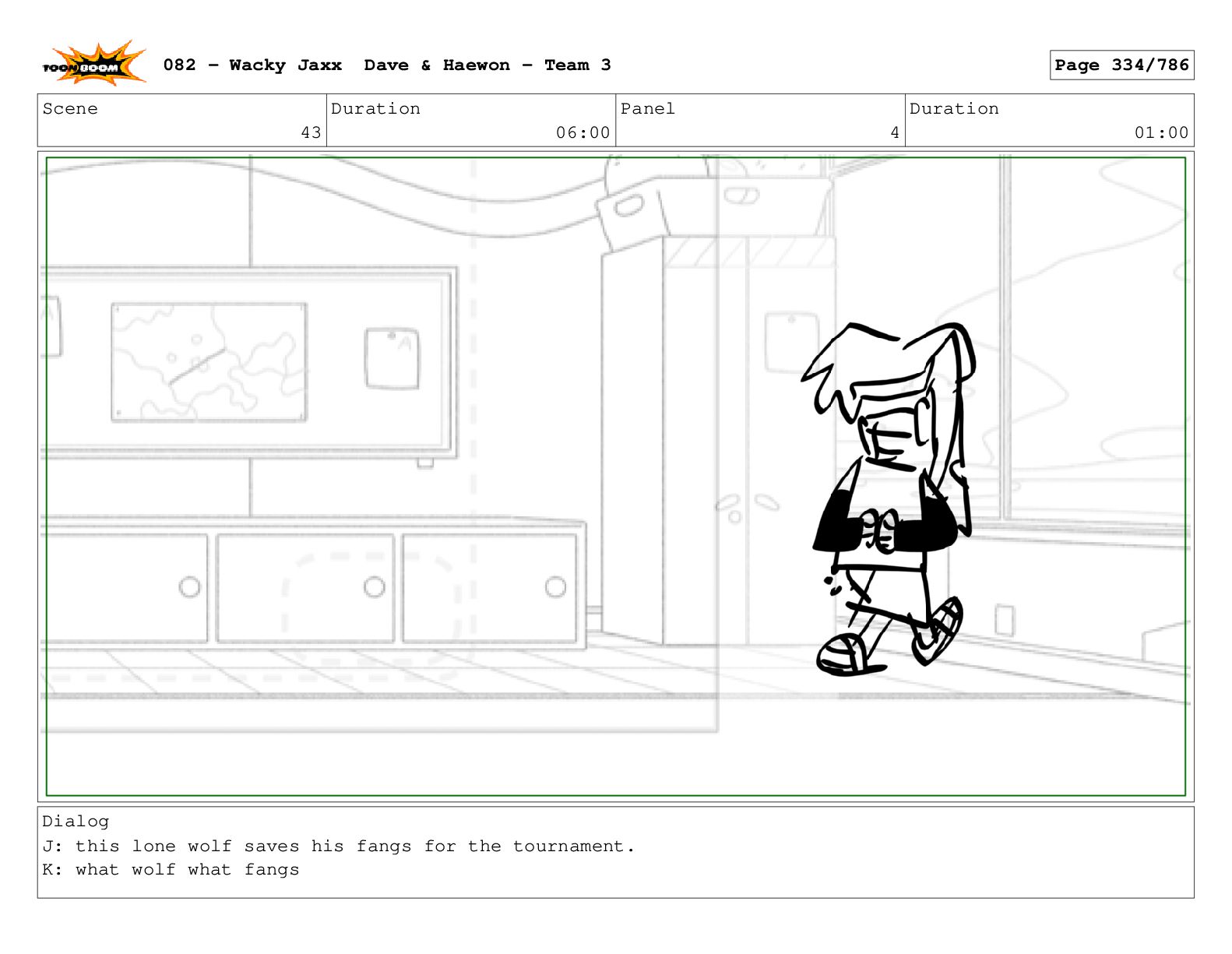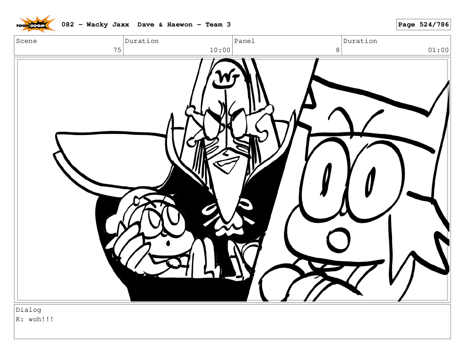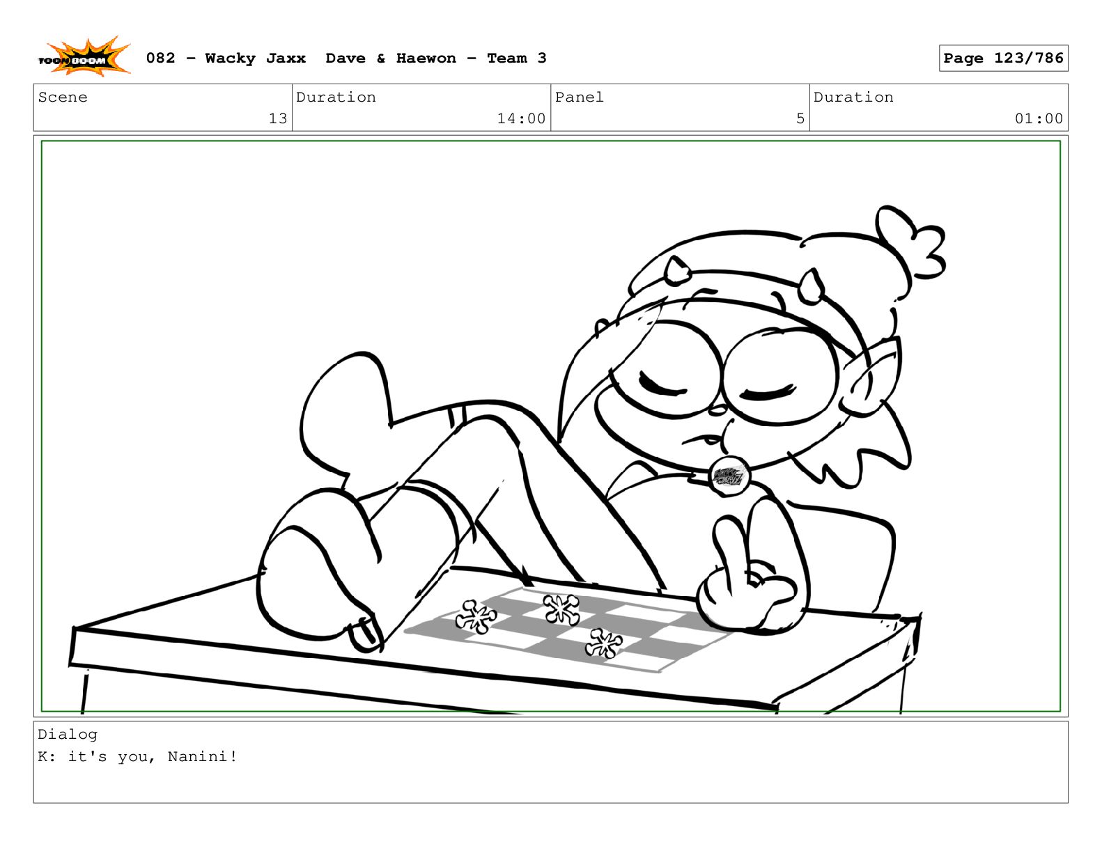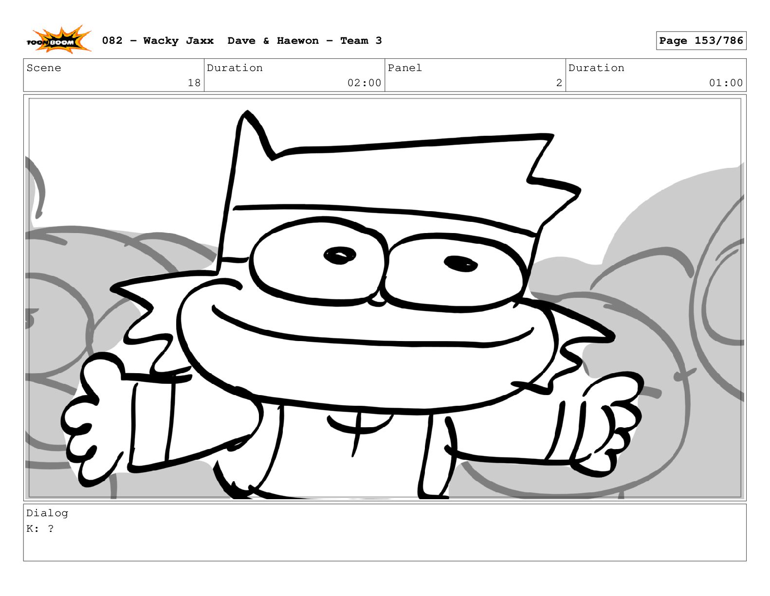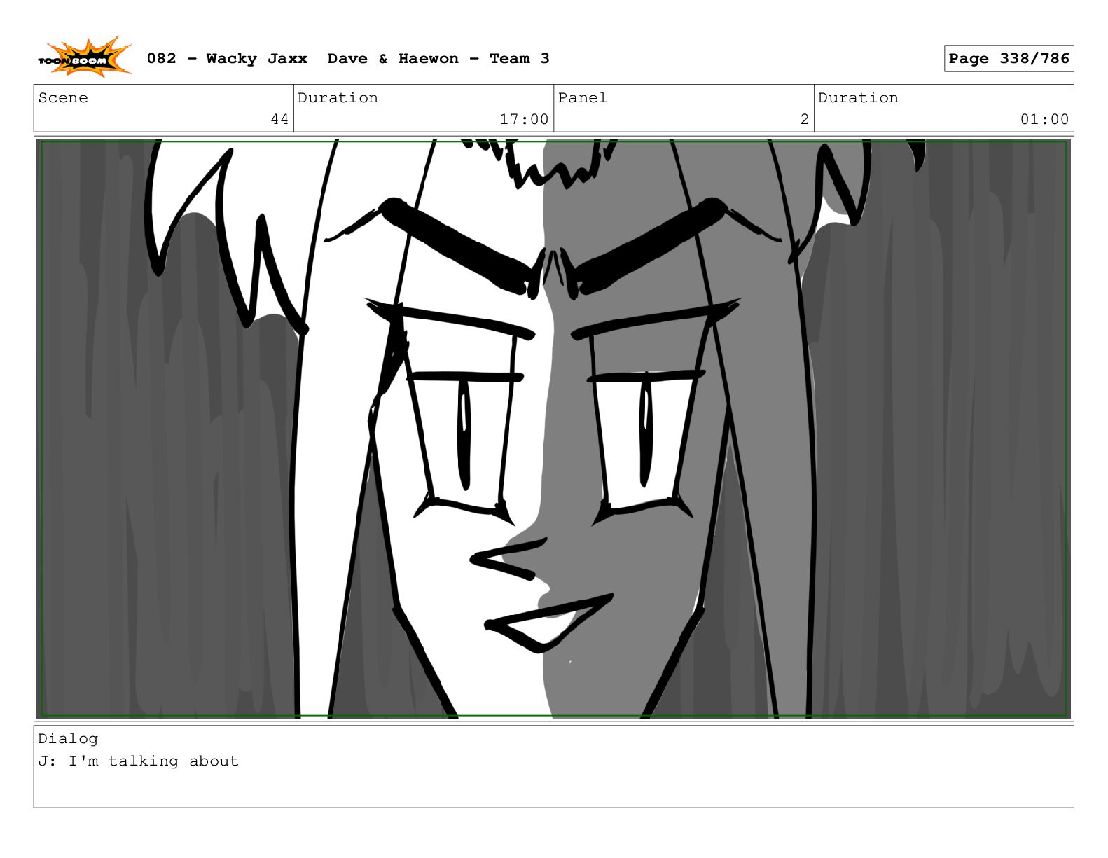 Scene 112 Duration 06:00 Panel 1 Duration 01:00 Dialog K/N: