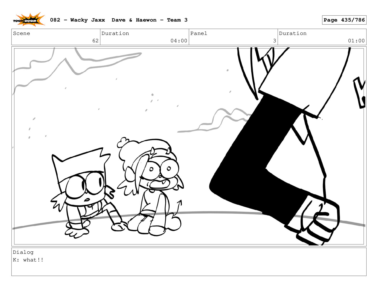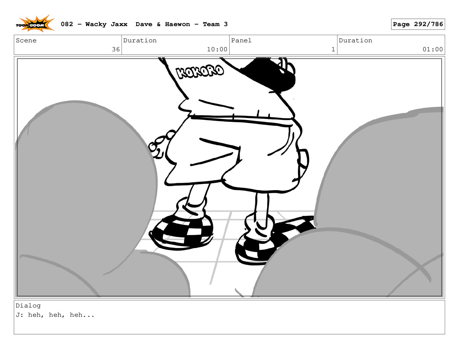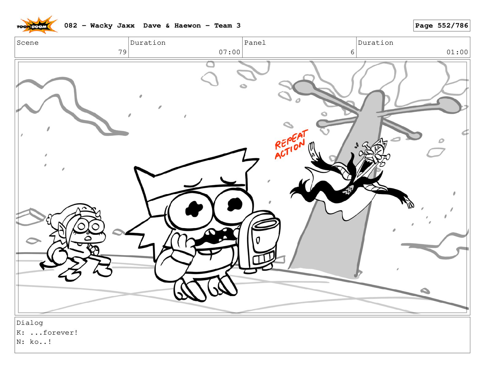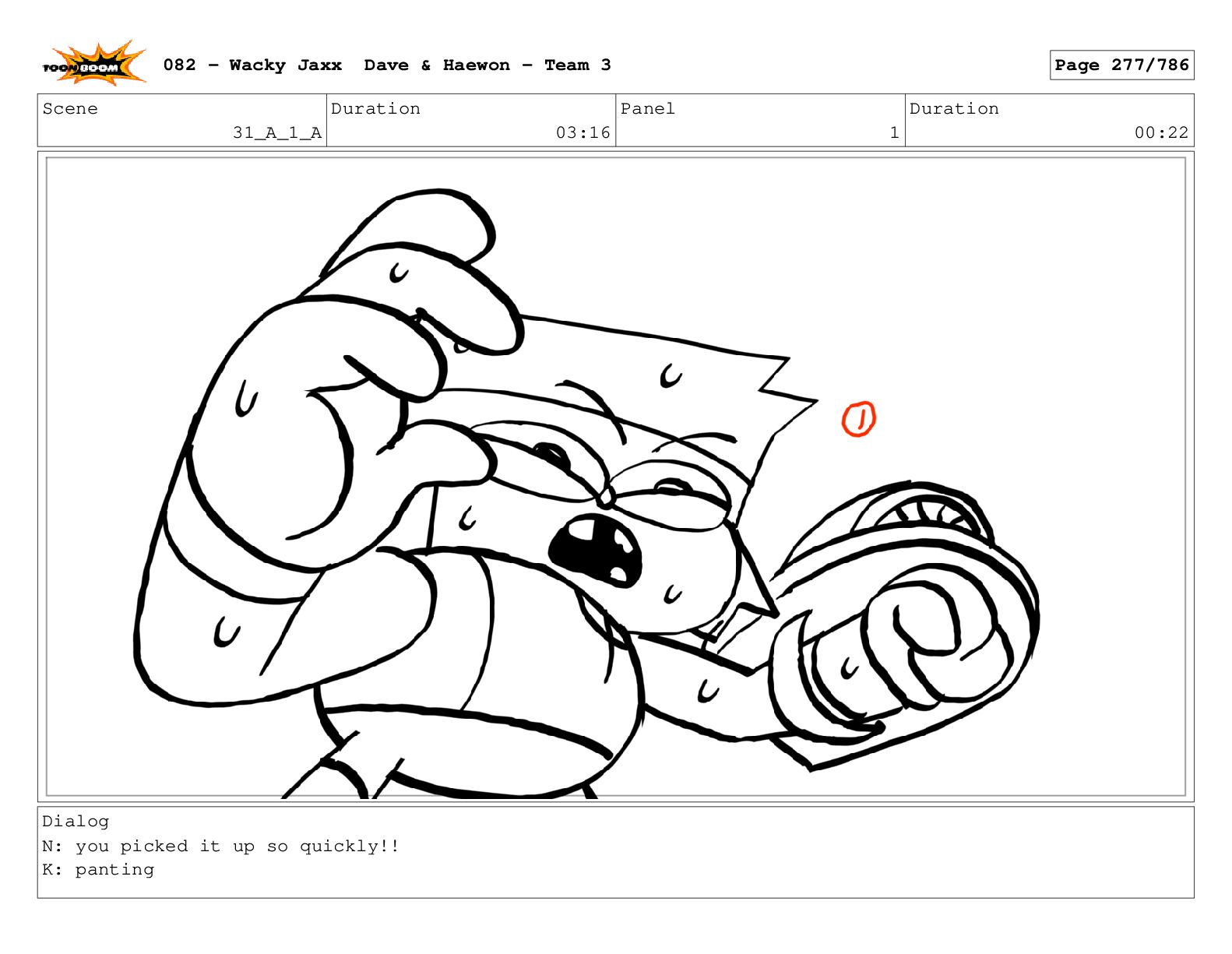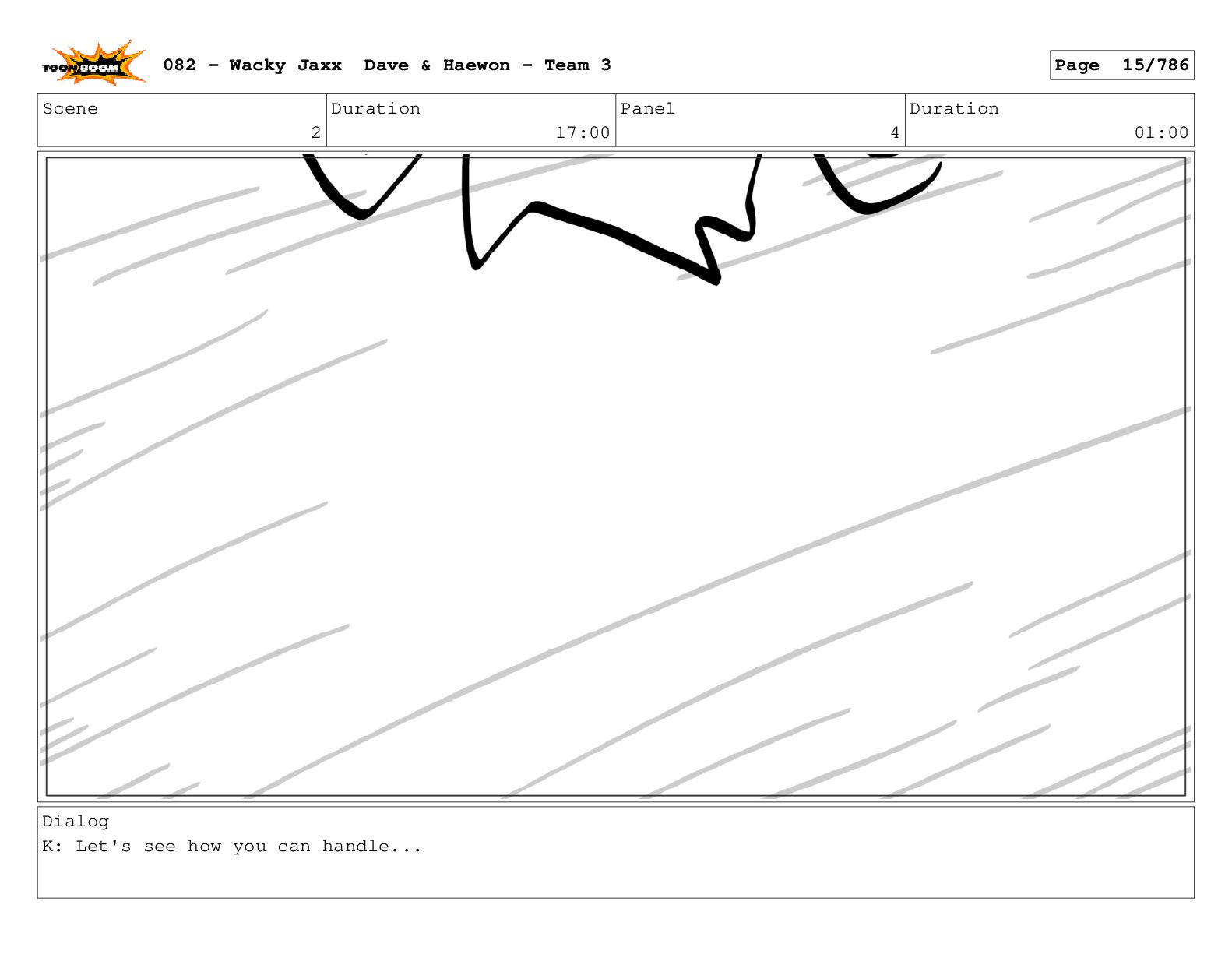 Scene 112 Duration 06:00 Panel 1 Duration 01:00 Dialog K/N: