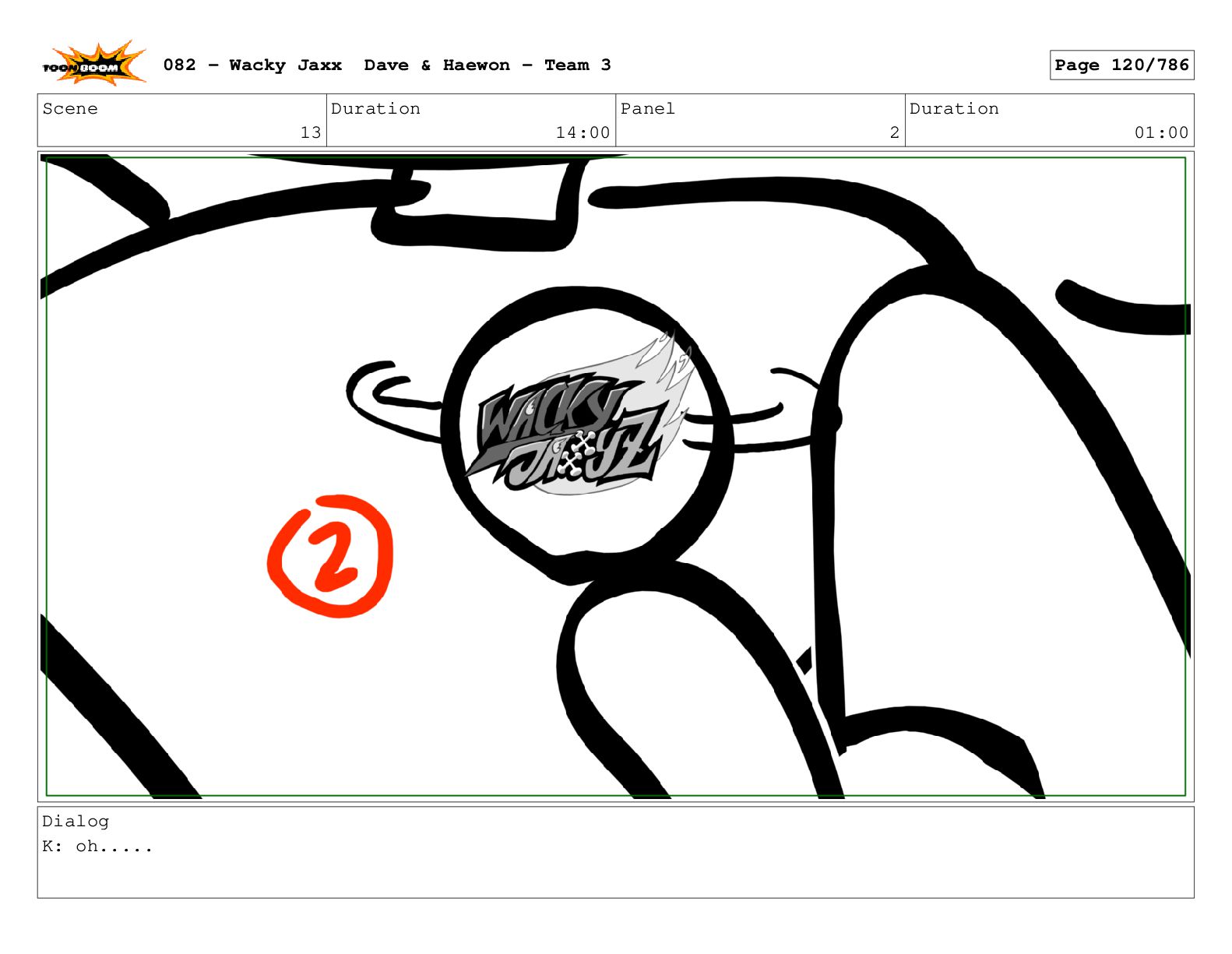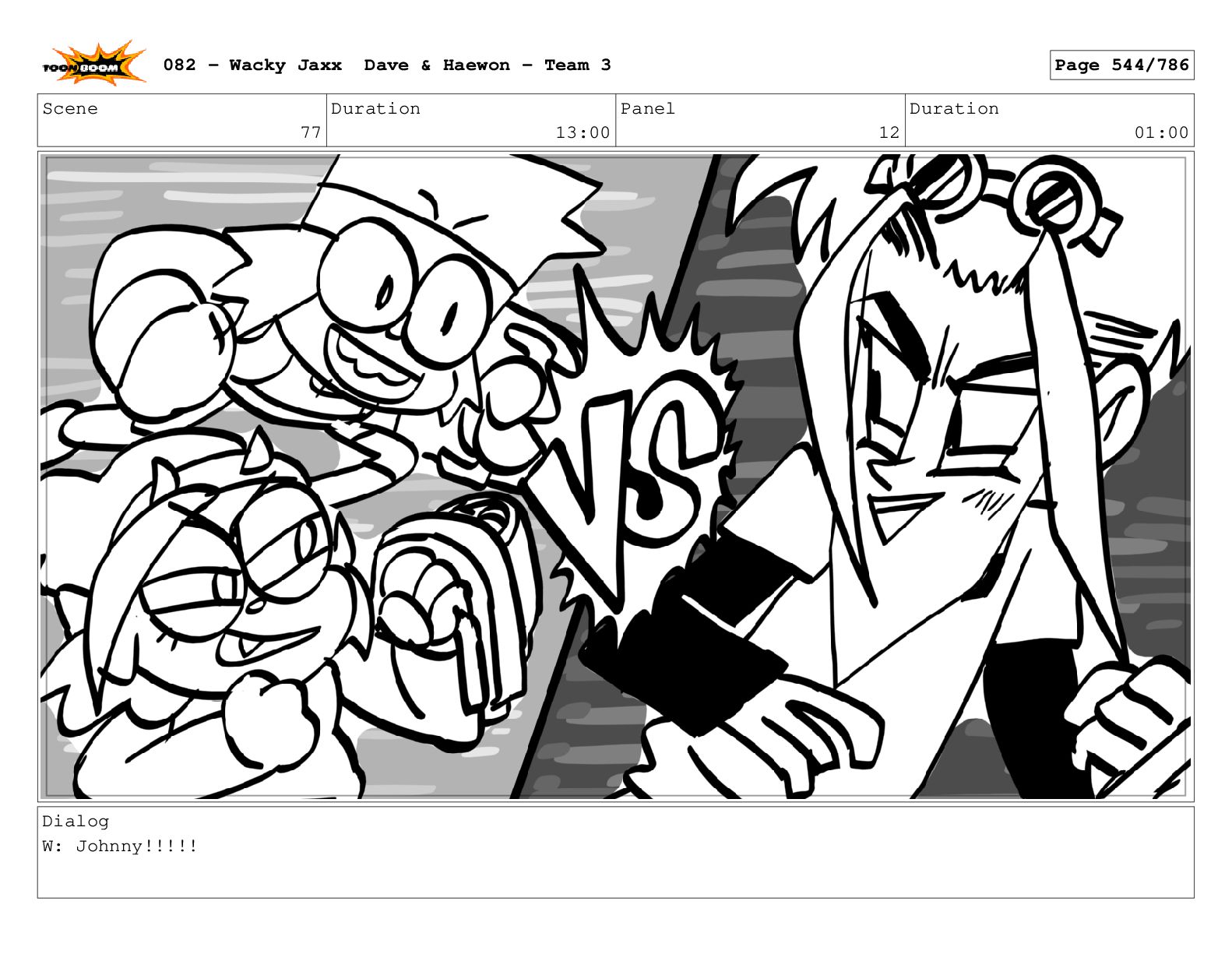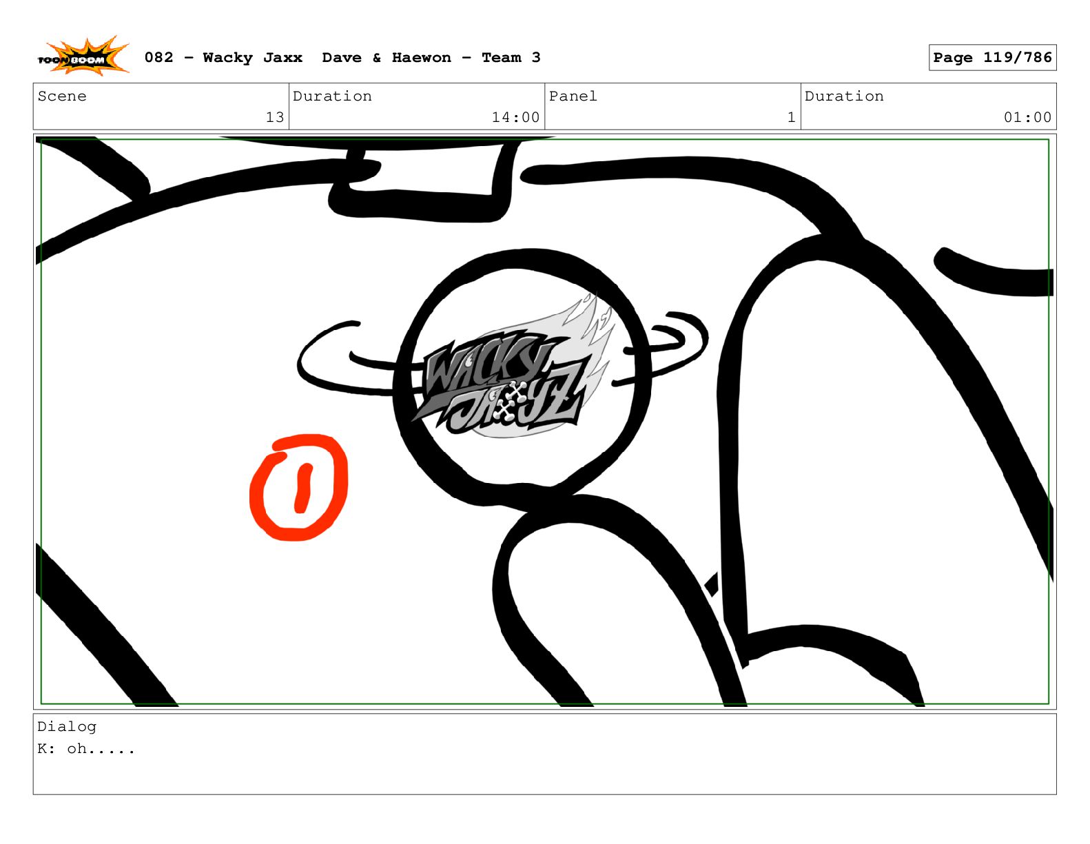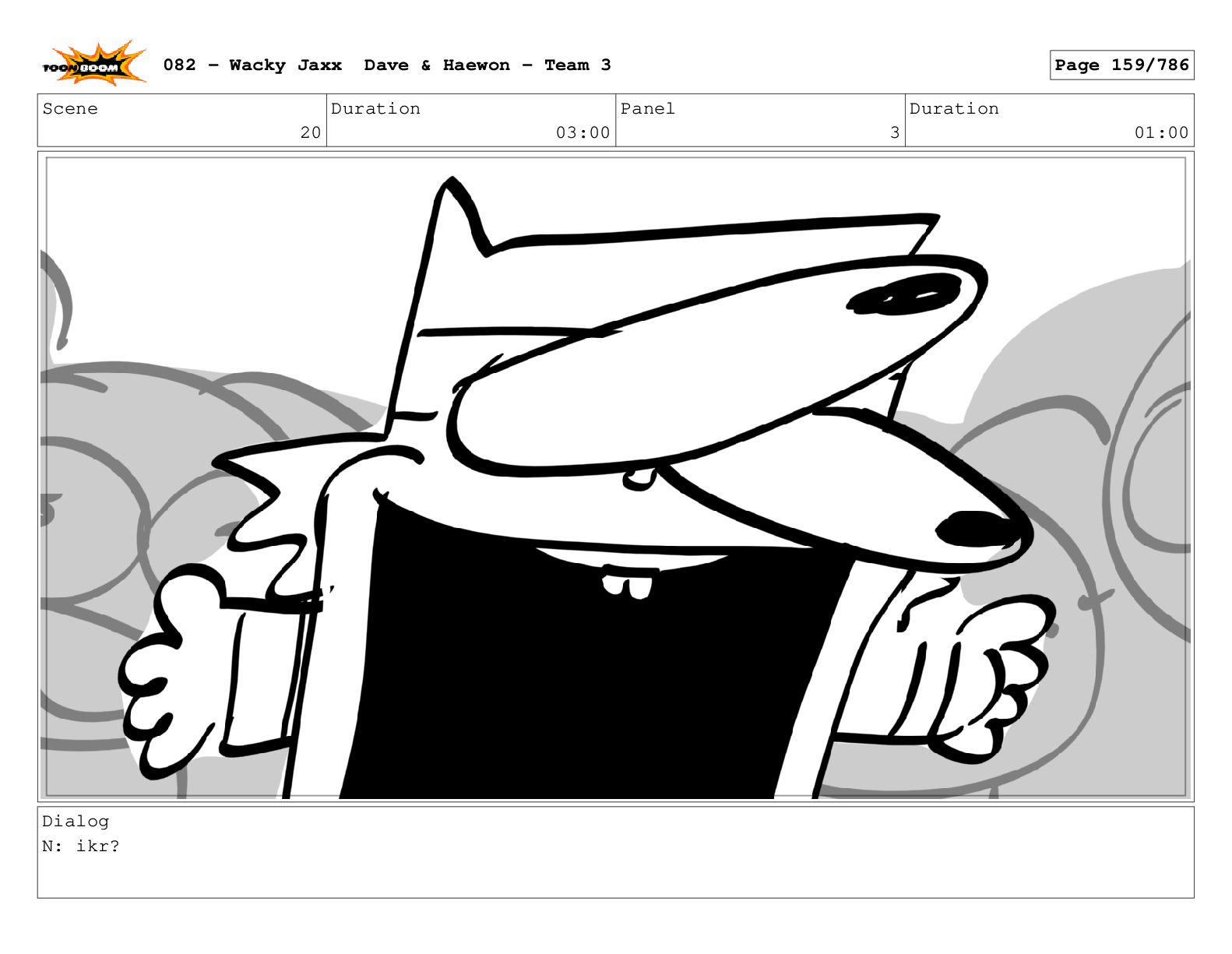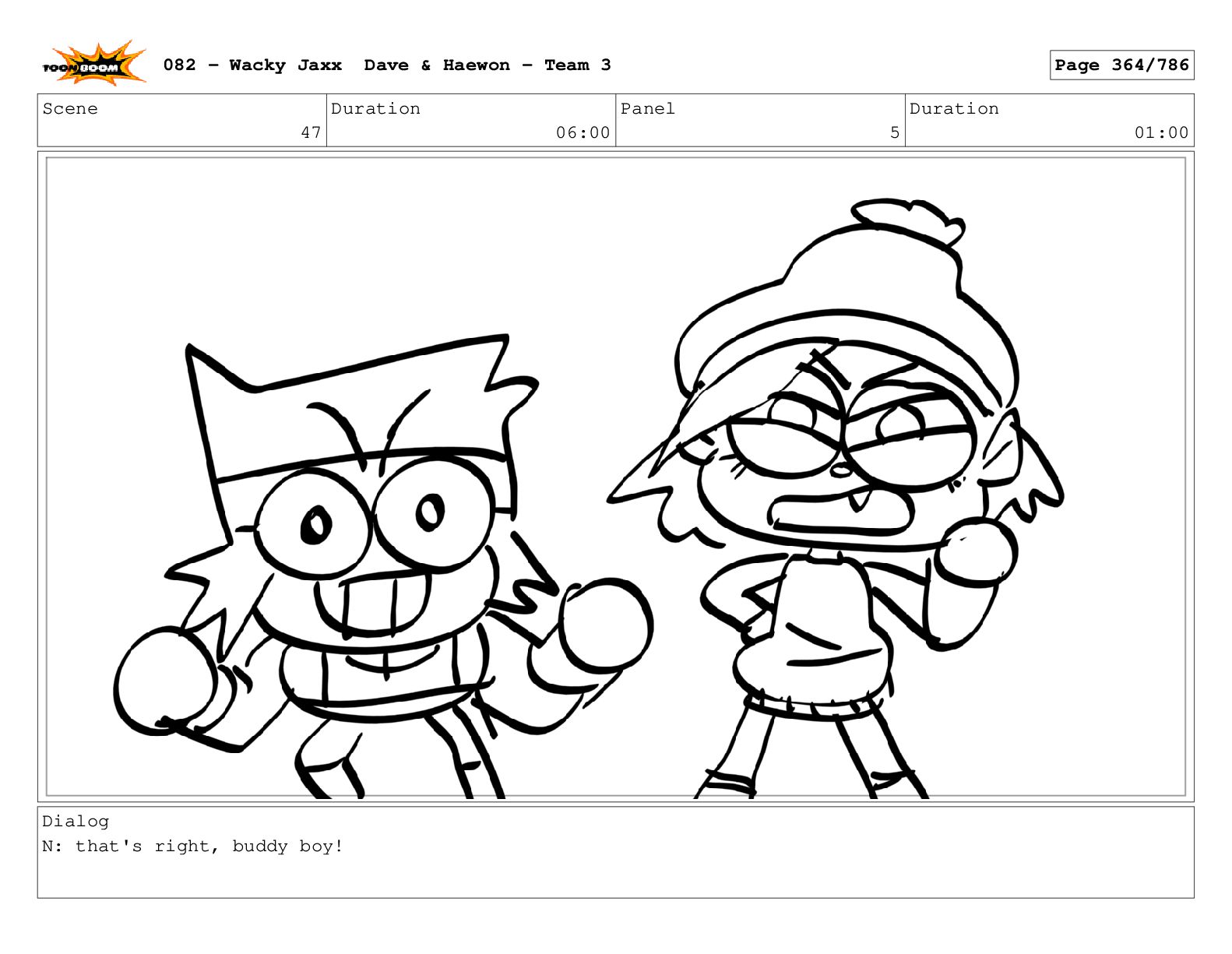 Scene 112 Duration 06:00 Panel 1 Duration 01:00 Dialog K/N: