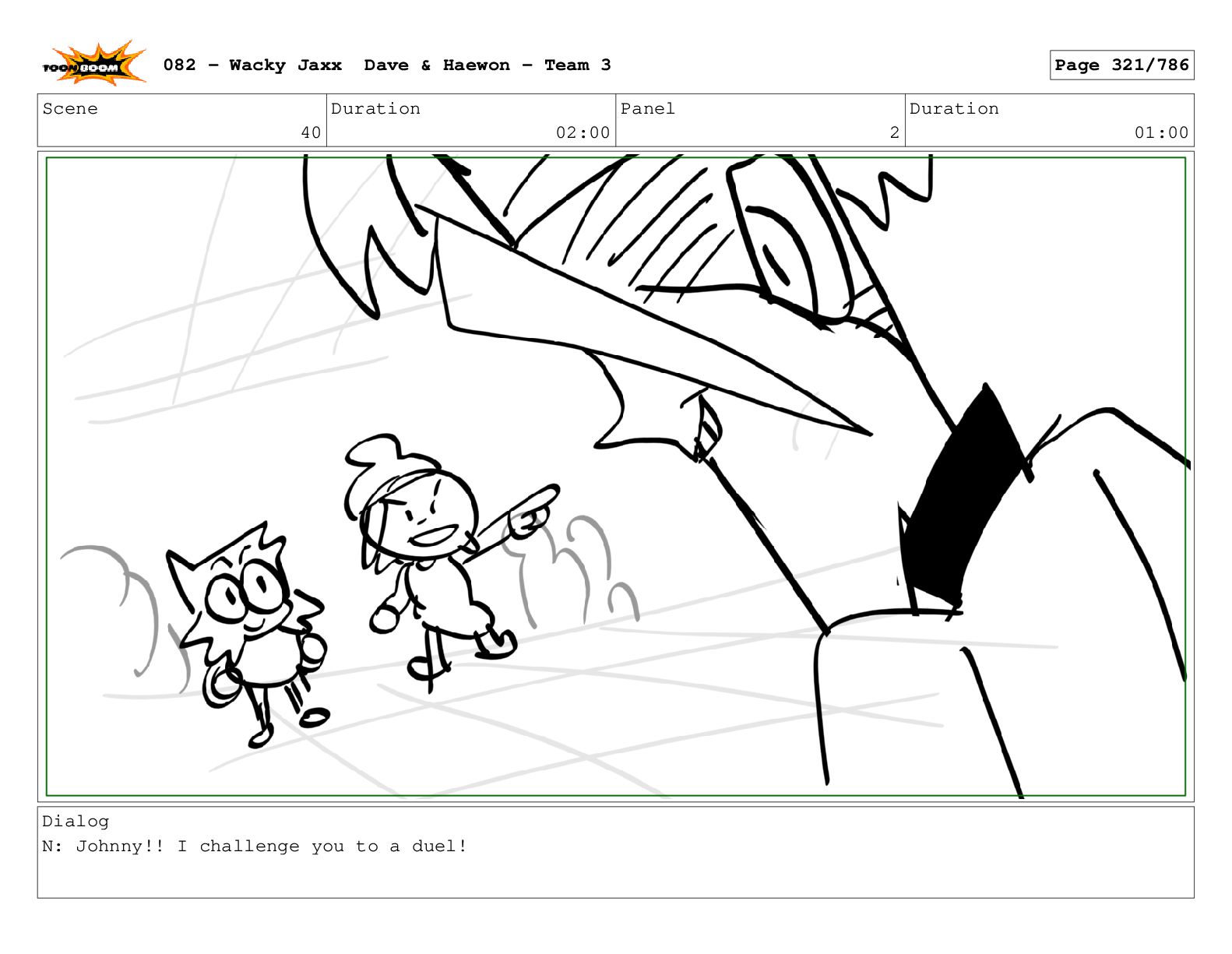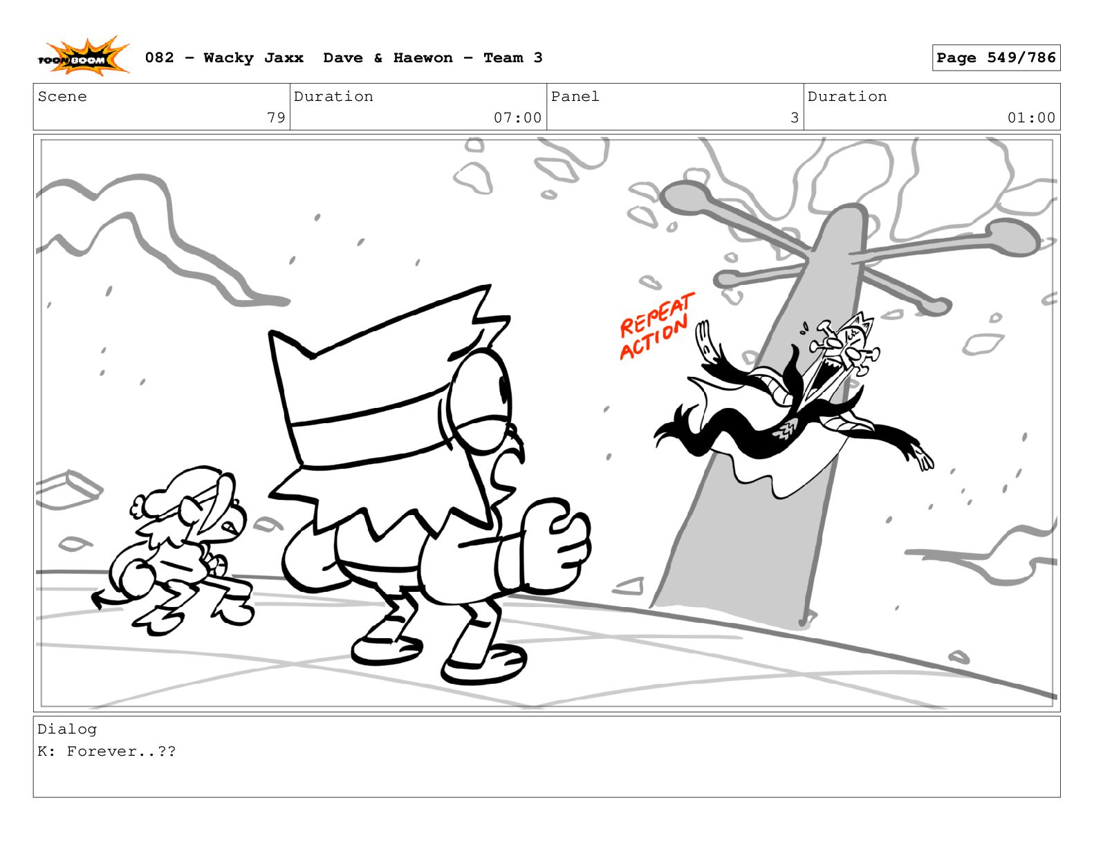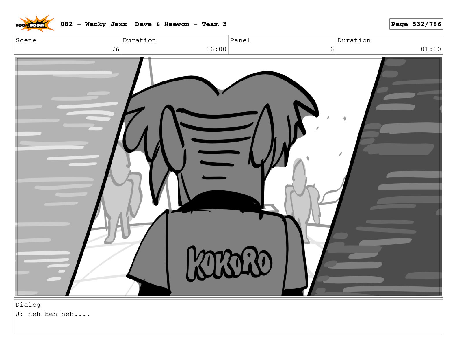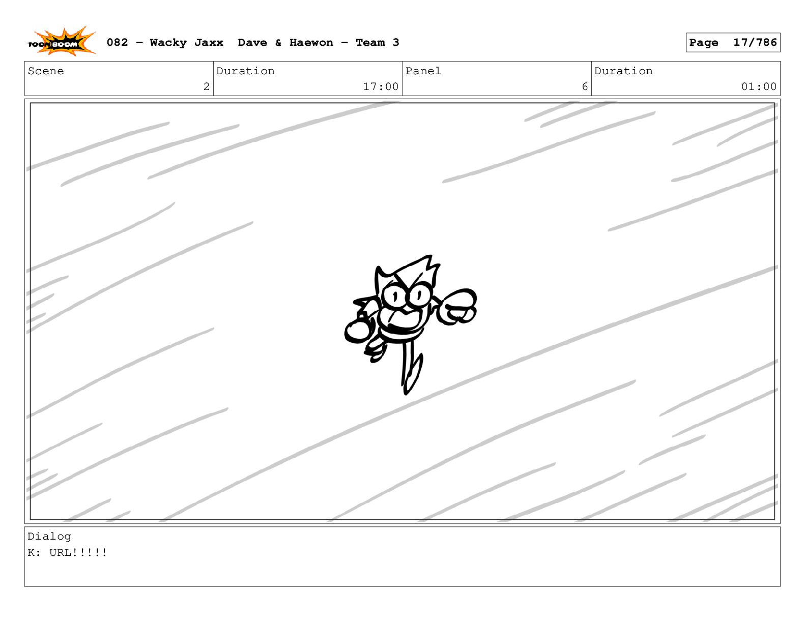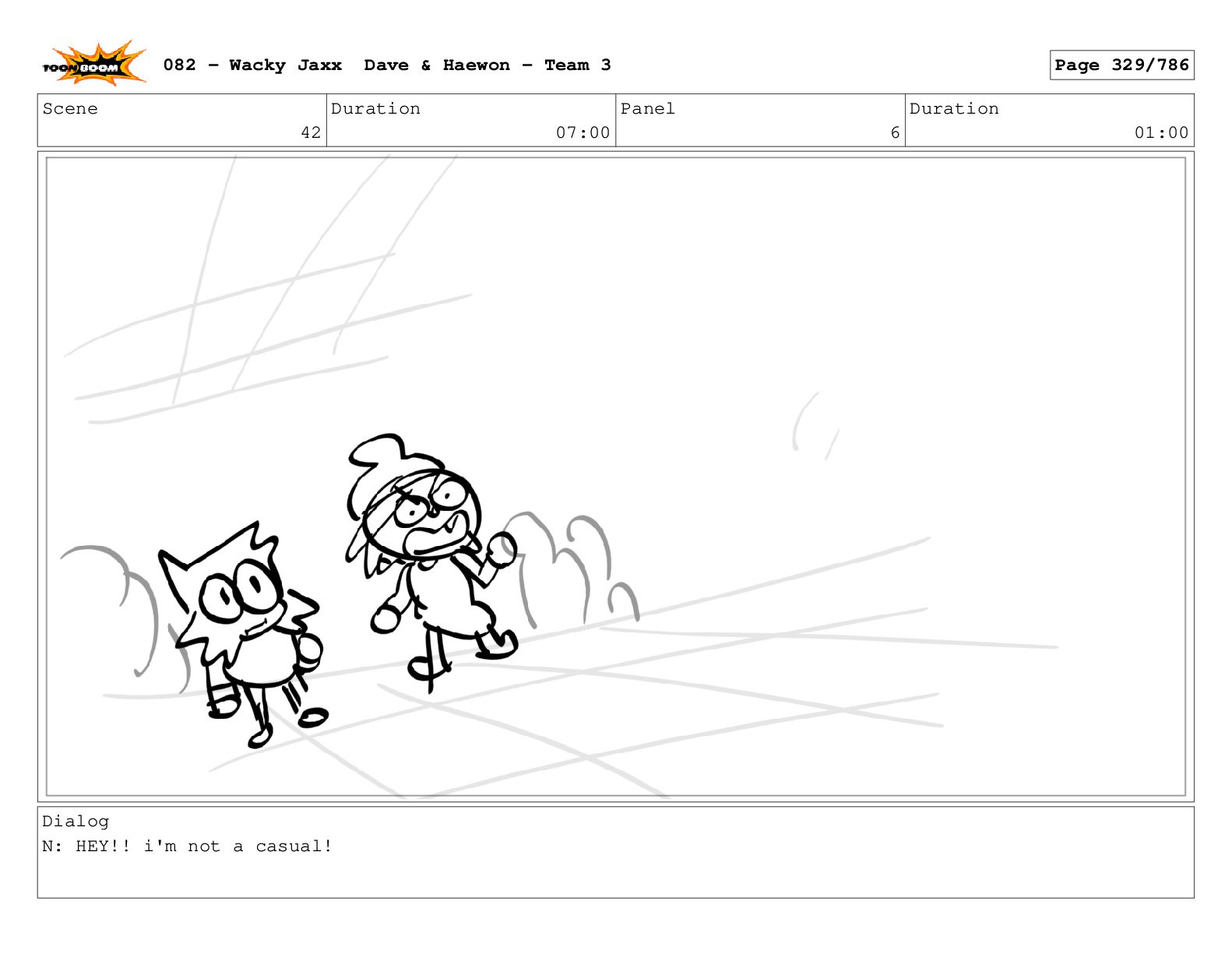 Scene 112 Duration 06:00 Panel 1 Duration 01:00 Dialog K/N: