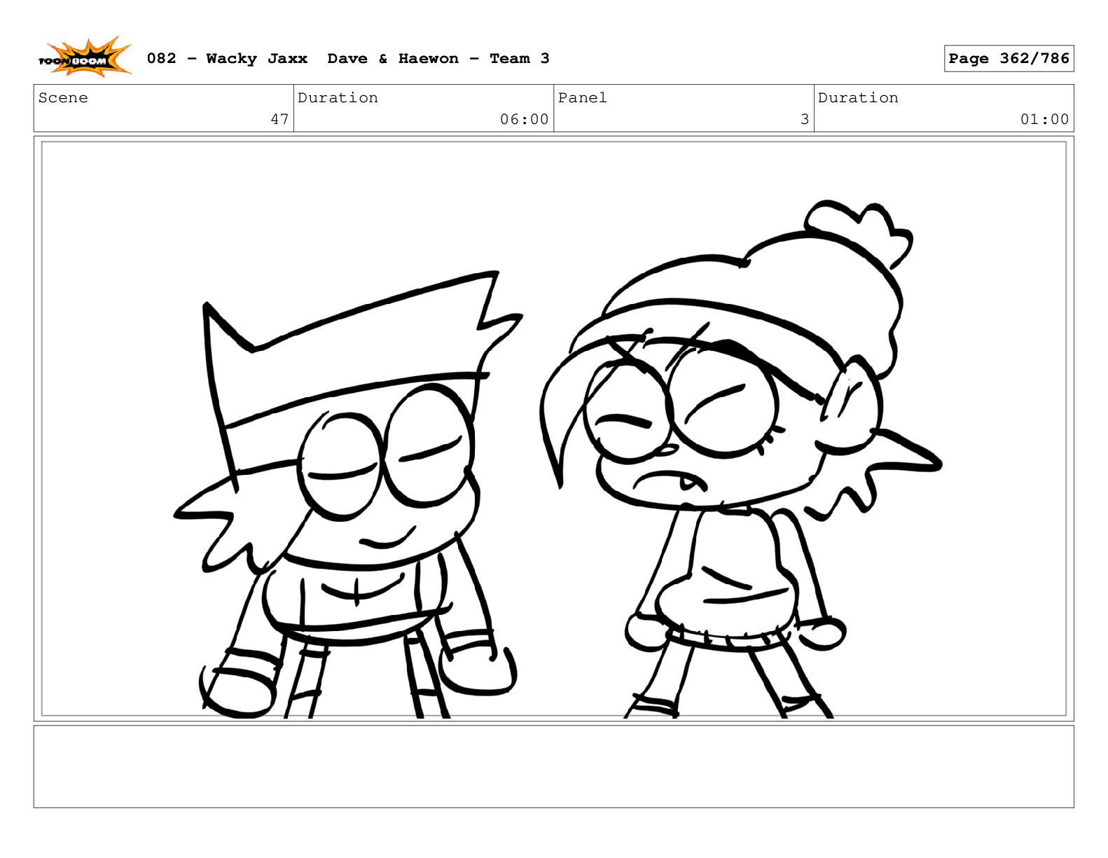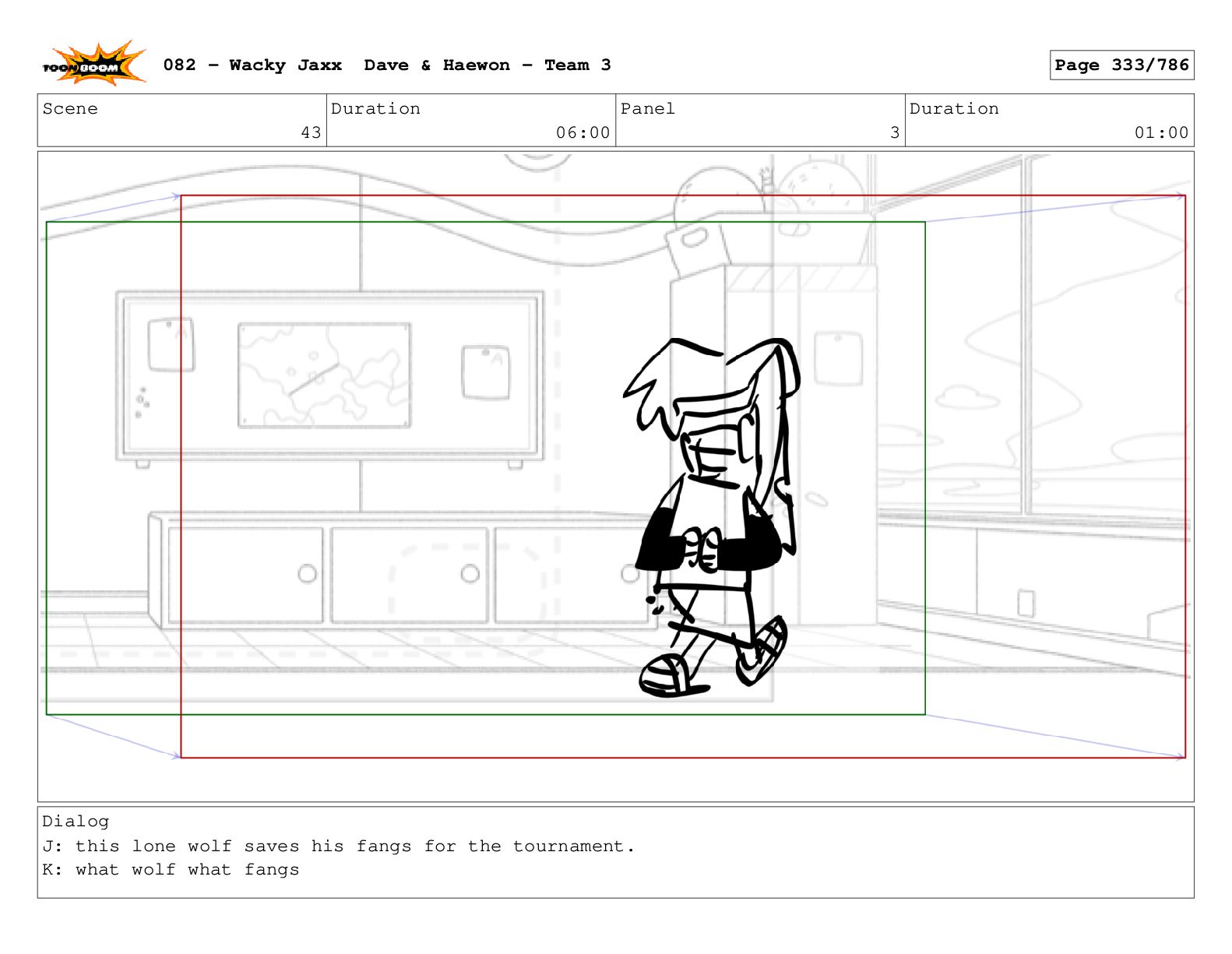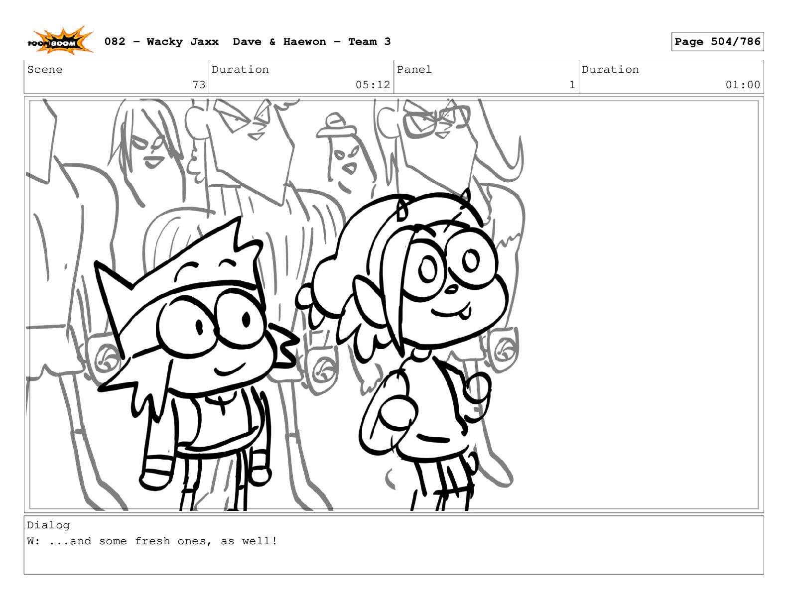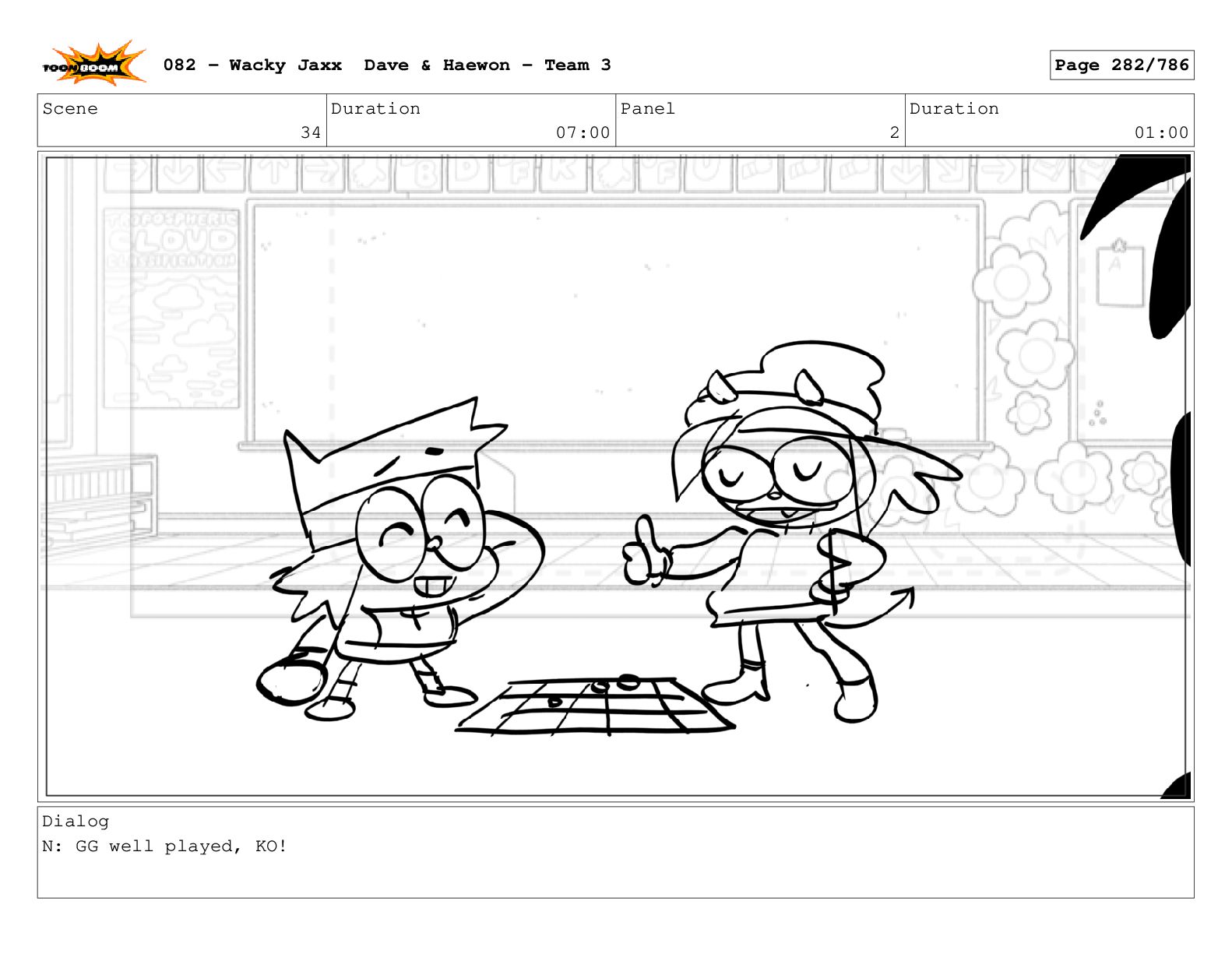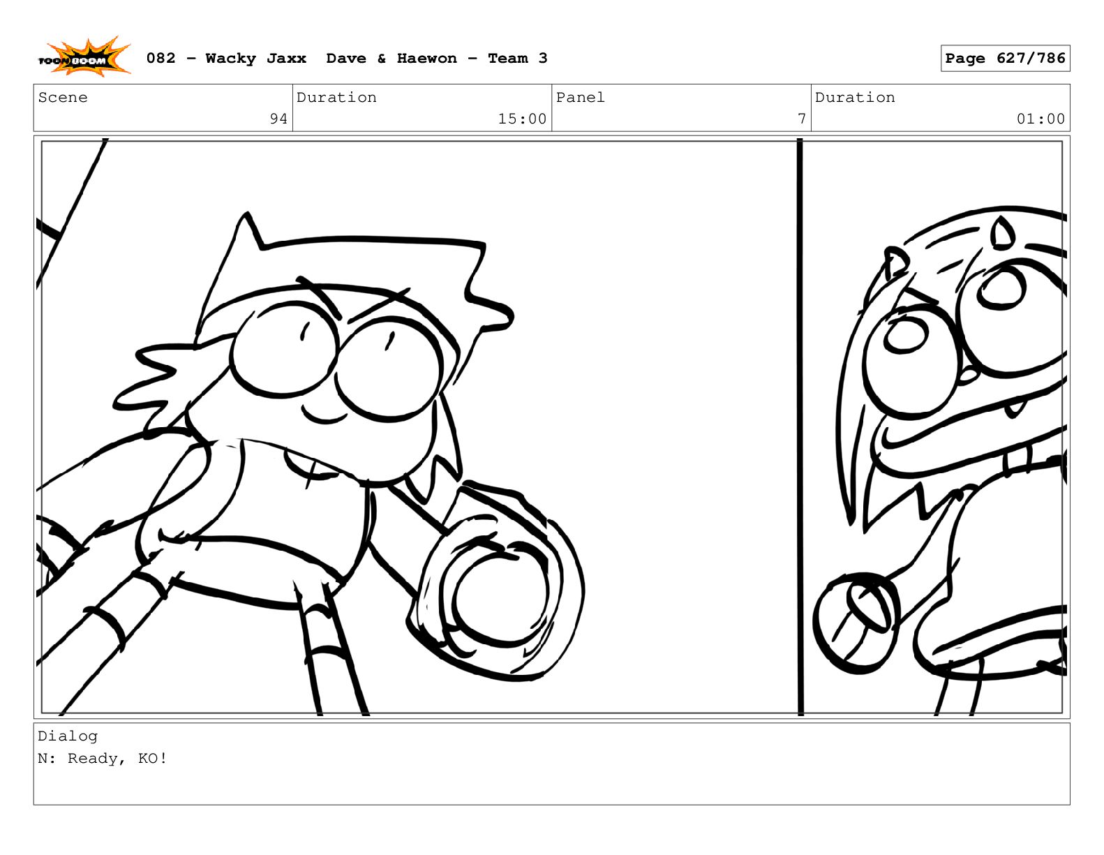 Scene 112 Duration 06:00 Panel 1 Duration 01:00 Dialog K/N: